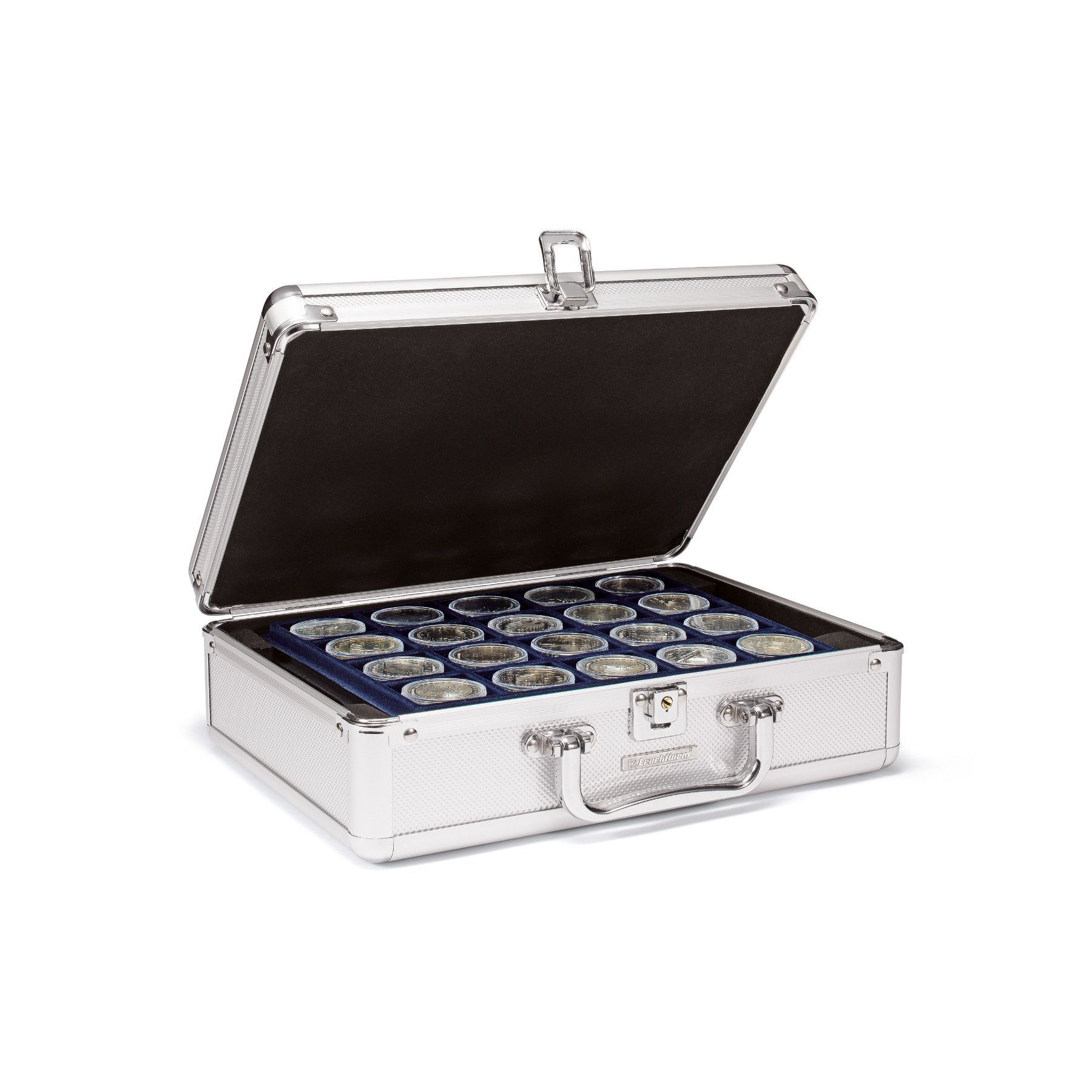 Leuchtturm 306206 Münzkoffer Cargo S 6 Inkl. 6 Tableaus für 112 Diverse Münzen bis 48 mm Ø Der kleine Münzkoffer Cargo S6 bietet nicht nur eine kompakte und hochwertige Lösung zur Aufbewahrung Ihrer Münzen, sondern auch einen Hauch von Eleganz und Funktionalität. Komplett mit edlem, dunkelbla