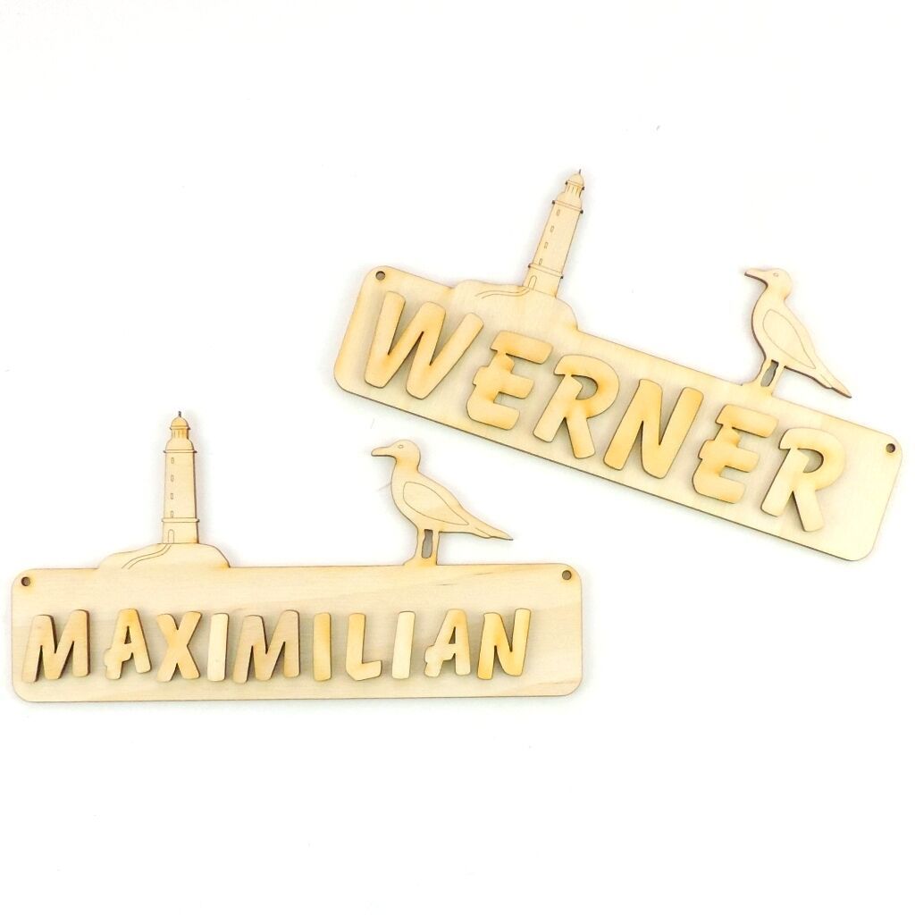 Leuchtturm Möwe Türschild Kinderzimmer personalisiert mit Buchstaben, 18cm Holz