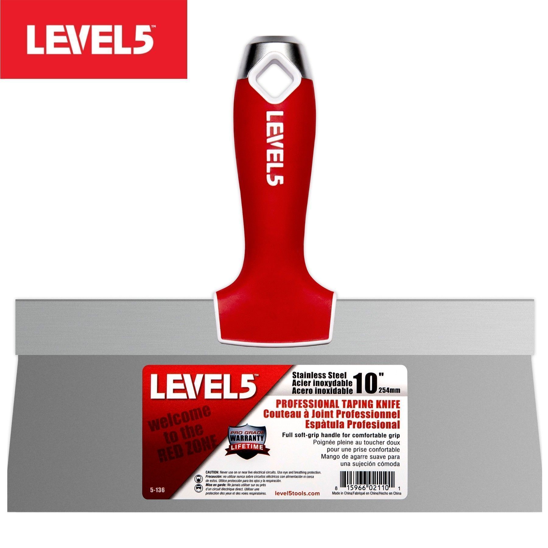 Level5 Profi Fassadenspachtel 10"/254mm, Klinge Edelstahl, Softgrip Griff 5-136