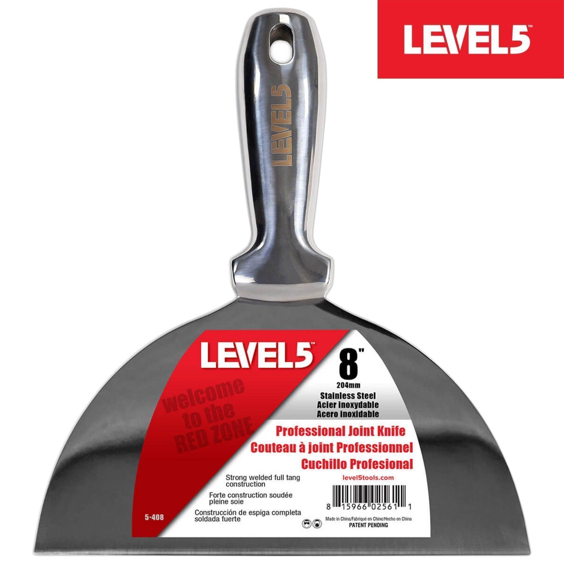 LEVEL5 Profi Spachtel ganz aus Edelstahl 8"/204mm Malerspachtel Trockenbau 5-408
