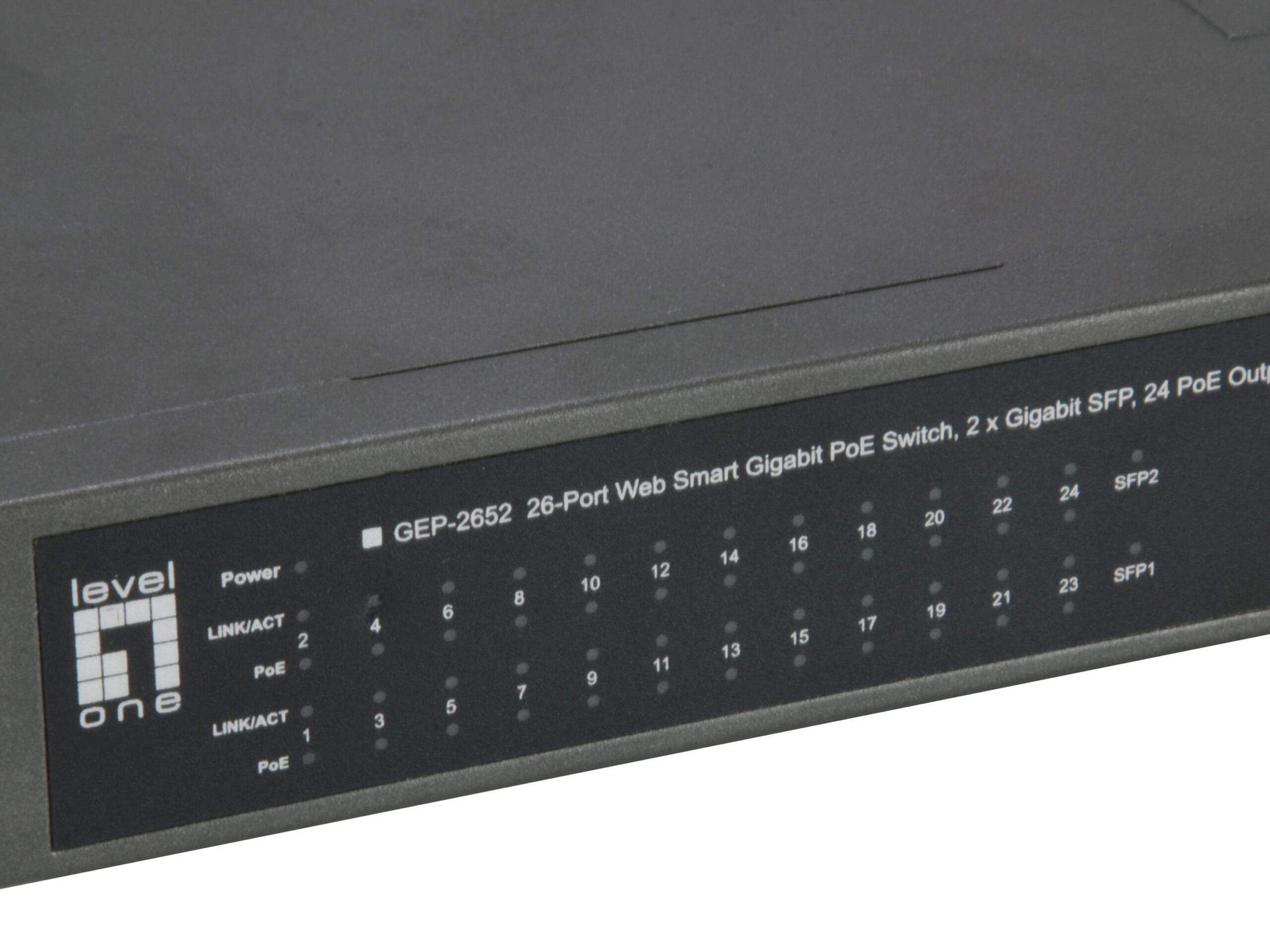 LevelOne 26-Port Web Smart Gigabit PoE Switch, 2x Gigbit SFP