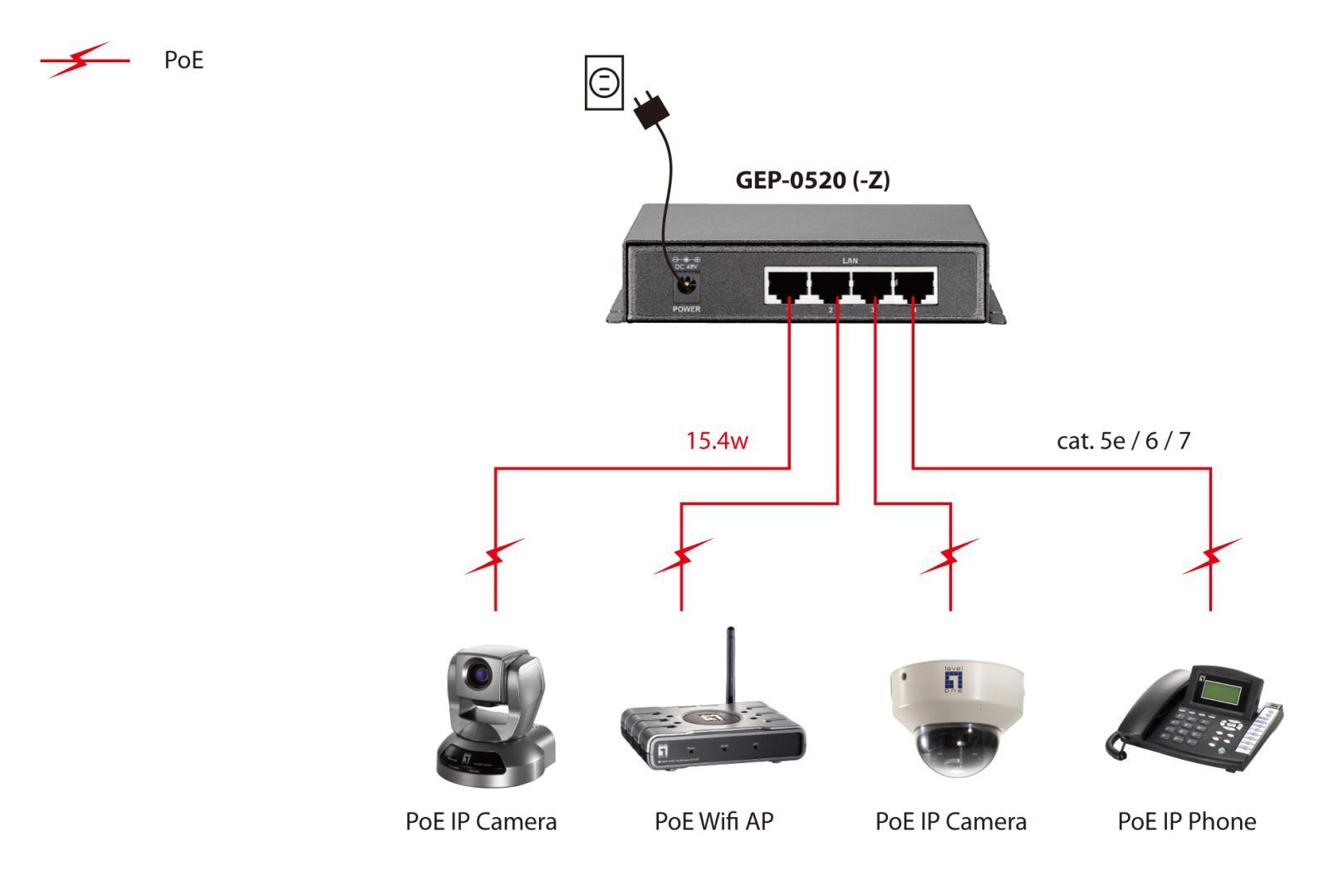 LevelOne GEP-0520 - Switch - 4 x 10/100/1000 (PoE)
