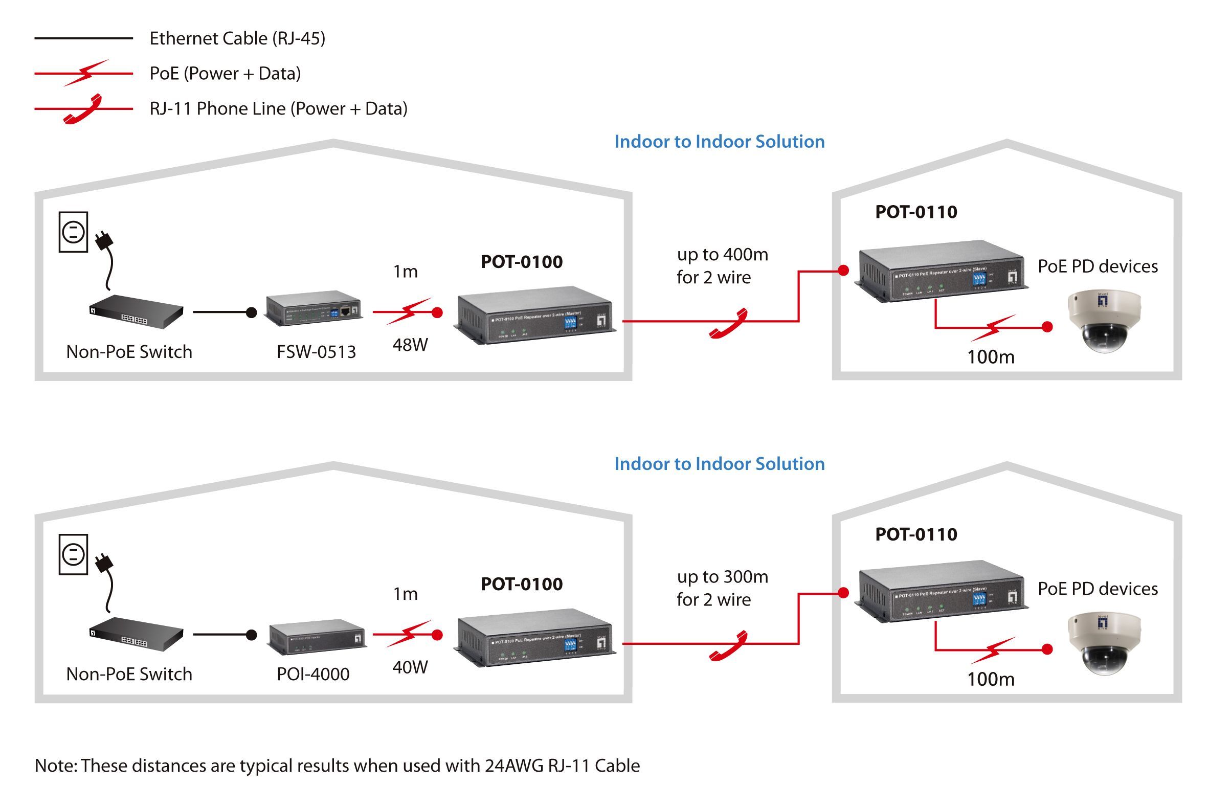 LevelOne POT-0110 PoE Repeater Slave over 2-wire