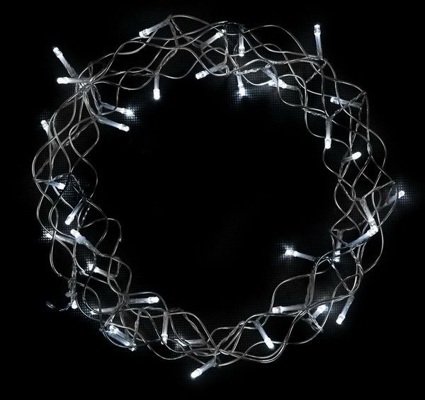 LEX Metallkranz grobmaschig 40 LED, Ø 30cm kaltweiß Timer, transp. Kabel