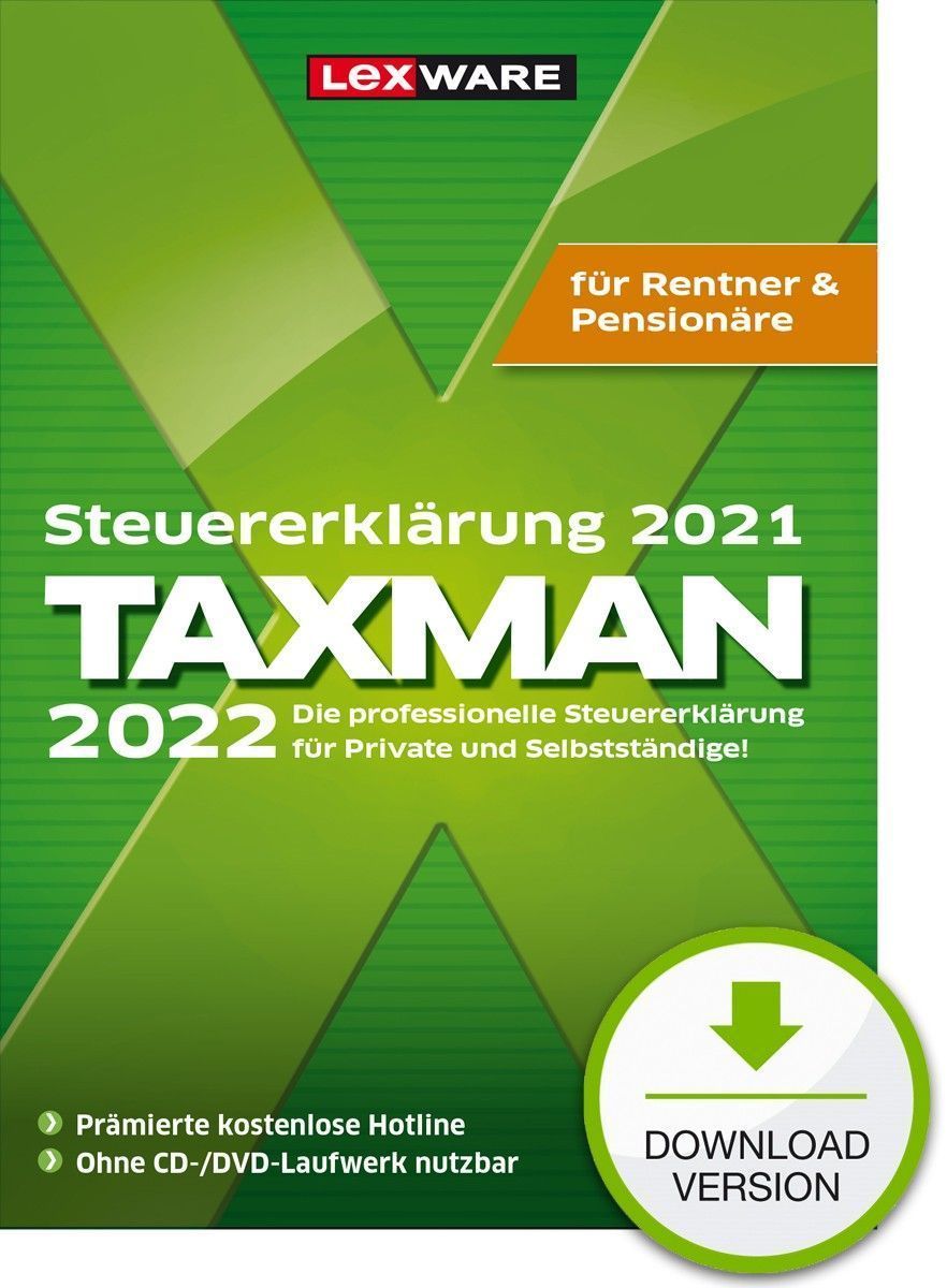 Lexware Taxman 2022 f�r Rentner - F�r das Steuerjahr 2021 - PC Download Version