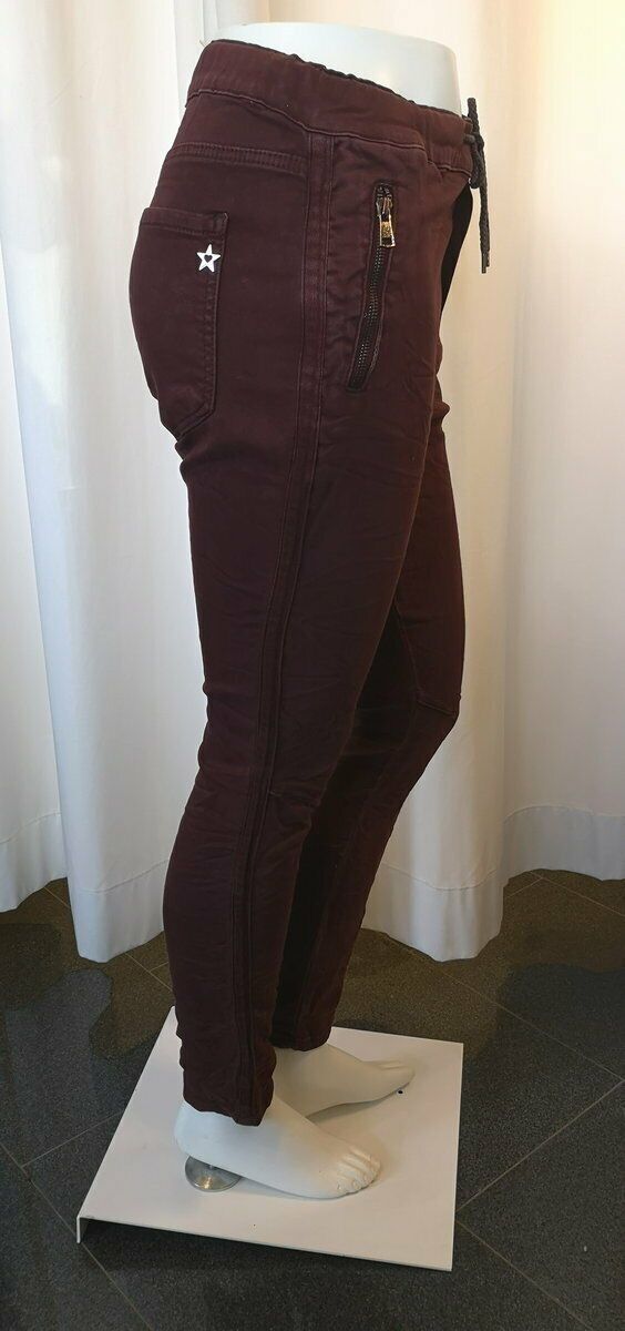 Lexxury Baggy Jeans Hose Jogpant Röhre Zipper Crash Look Gr. XS - XL Weinrot LEXXURY JOGPANT MIT ZIPPER Trendige Jogpant von Lexxury, durch Stretchanteil super Passform im Crash-Look. Die weinrote Röhre hat zwei Eingrifftaschen mit Zipper und zwei Gesäßtaschen. Details: Jogpant von Lexxury Baggy Jea