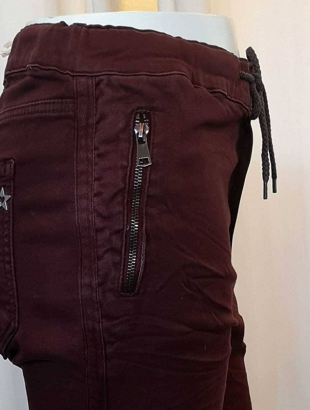 Lexxury Baggy Jeans Hose Jogpant Röhre Zipper Crash Look Gr. L Weinrot/ Bordeaux