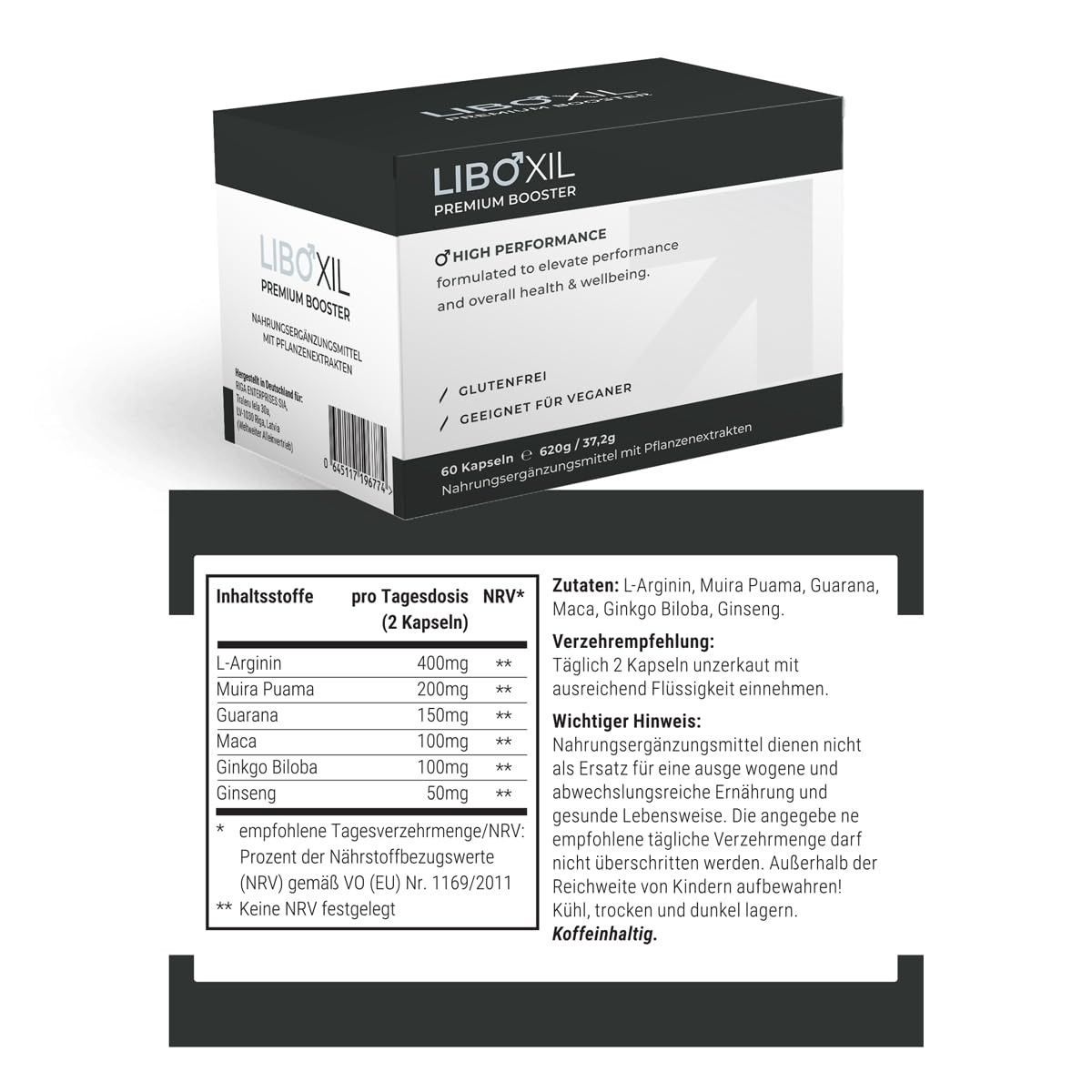 Liboxil 60 kapseln für den aktiven mann mit arginin, maca, guarana