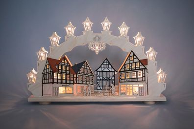 • Schwibbogen Altstadt mit el. Beleuchtung BxHxT 66x41x6cm NEU Lichterbogen Fenster