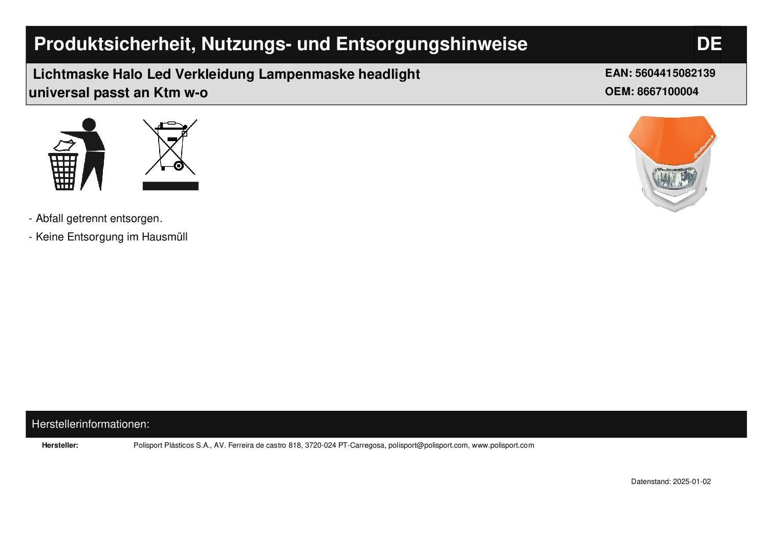 Polisport Lichtmaske Halo Led Verkleidung Lampenmaske headlight universal passt an Ktm w-o