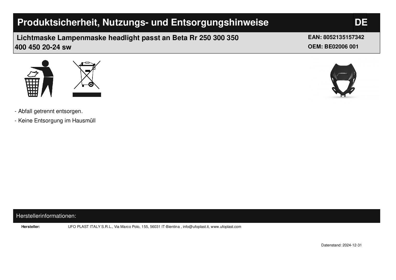 Lichtmaske Lampenmaske headlight passt an Beta Rr 250 300 350 400 450 20-25 sw