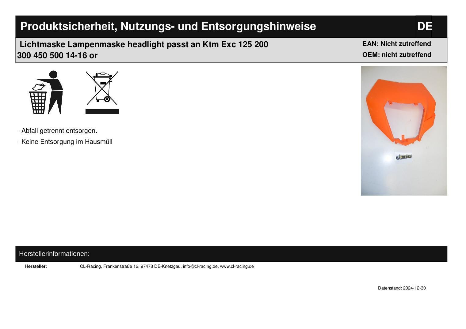 Lichtmaske Lampenmaske headlight passt an Ktm Exc 125 200 300 450 500 14-16 or