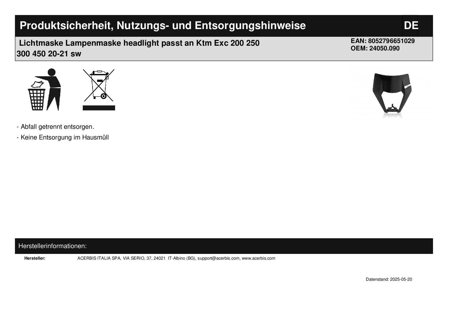 Acerbis Lichtmaske Lampenmaske headlight passt an Ktm Exc 200 250 300 450 20-21 sw