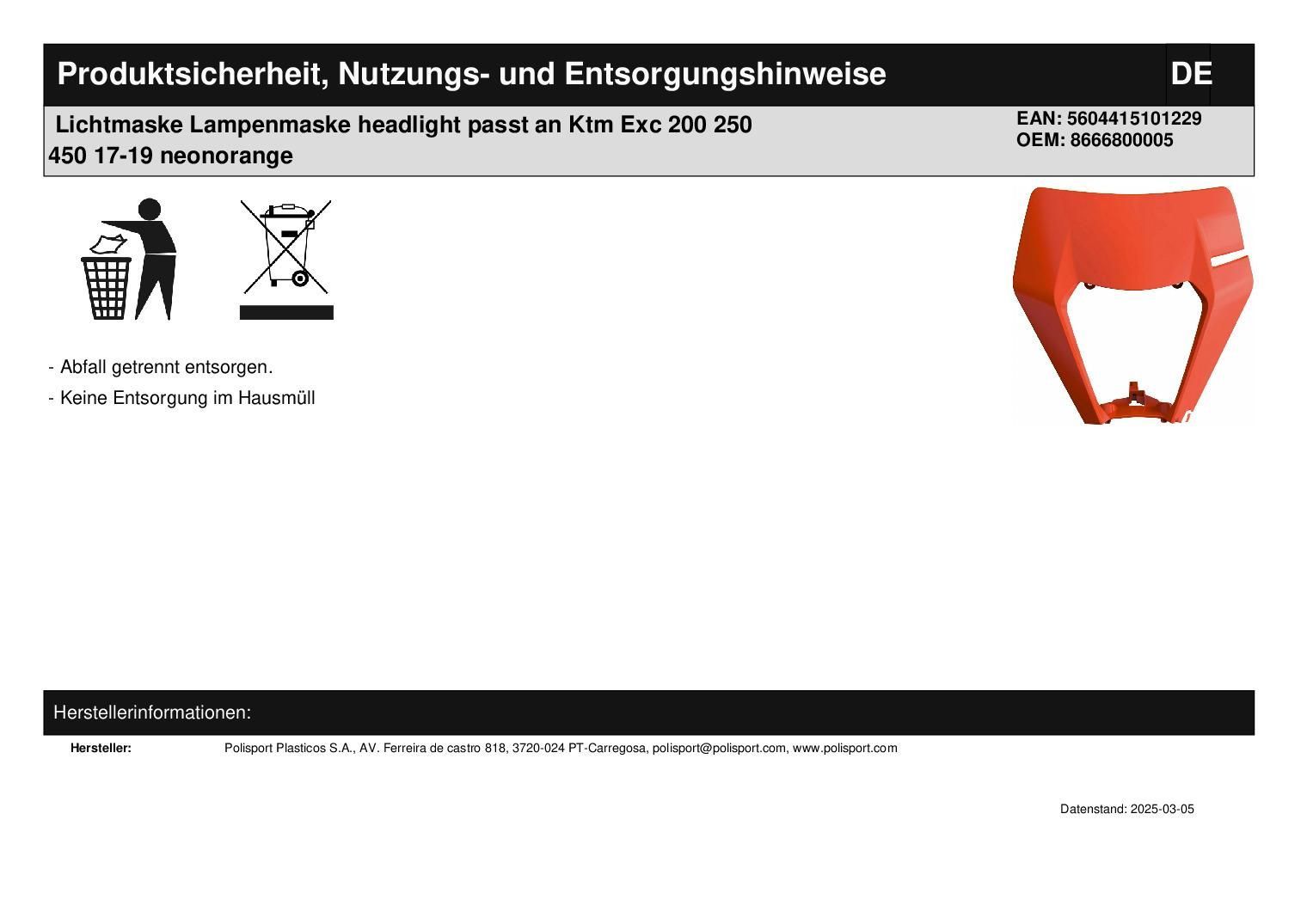 Polisport Lichtmaske Lampenmaske headlight passt an Ktm Exc 200 250 450 17-19 neonorange