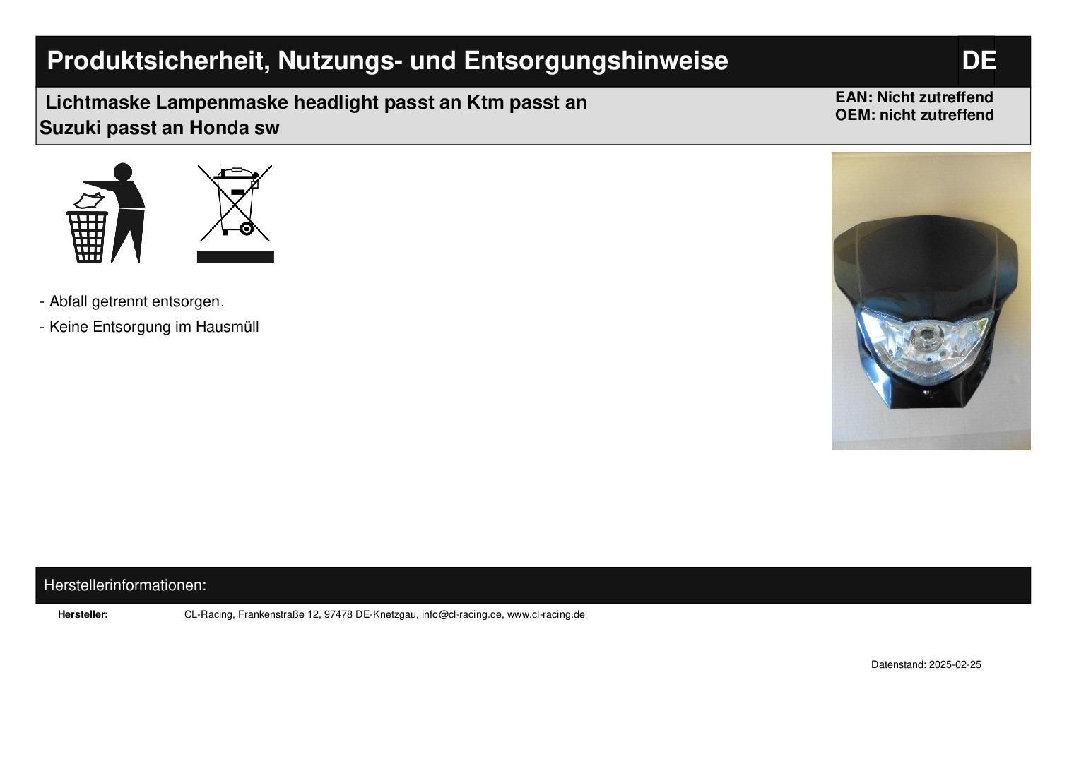 Lichtmaske Lampenmaske headlight passt an Ktm passt an Suzuki passt an Honda sw