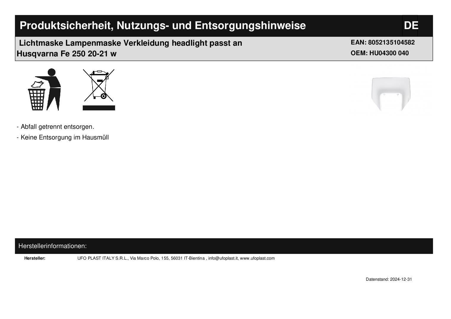 Lichtmaske Lampenmaske Verkleidung headlight passt an Husqvarna Fe 250 20-21 w