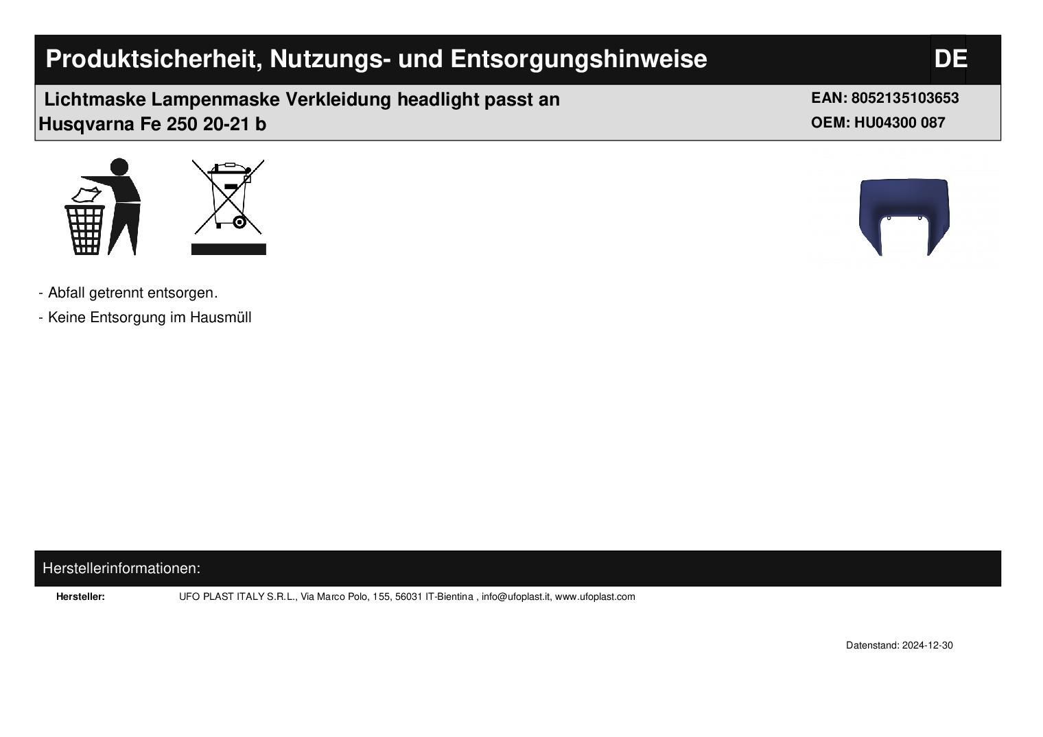 Lichtmaske Lampenmaske Verkleidung headlight passt an Husqvarna Fe 250 20-23 b