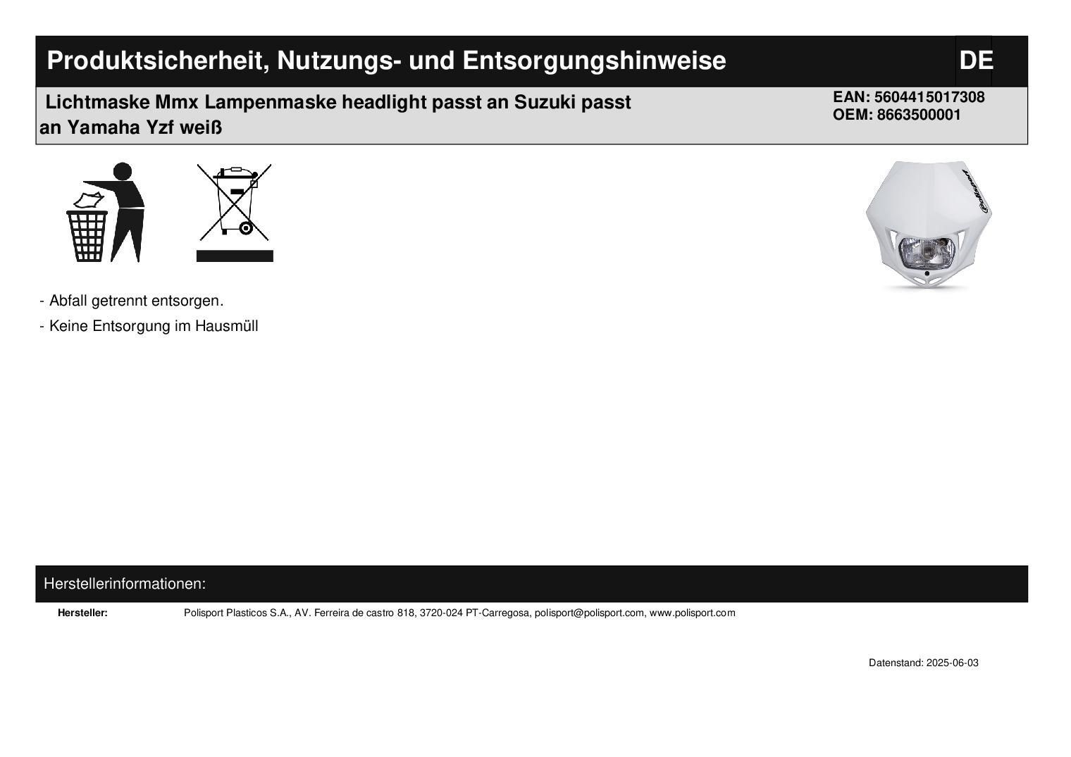 Polisport Lichtmaske Mmx Lampenmaske headlight passt an Suzuki passt an Yamaha Yzf wei?