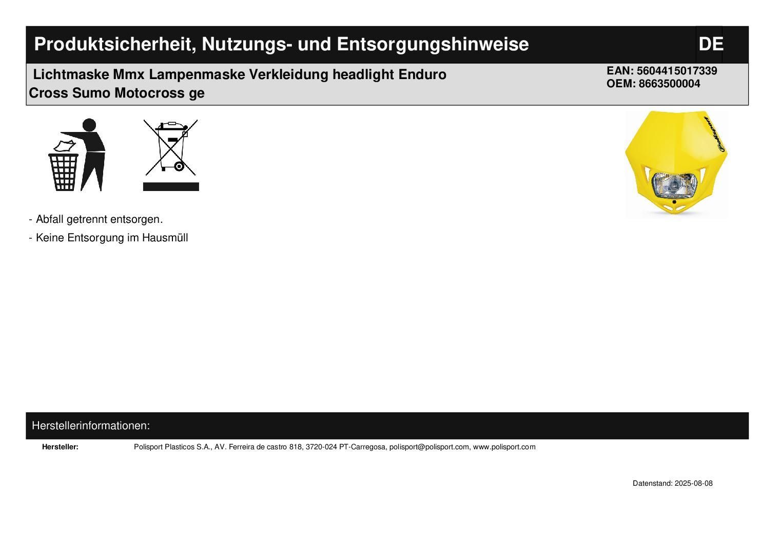 Polisport Lichtmaske Mmx Lampenmaske Verkleidung headlight Enduro Cross Sumo Motocross ge
