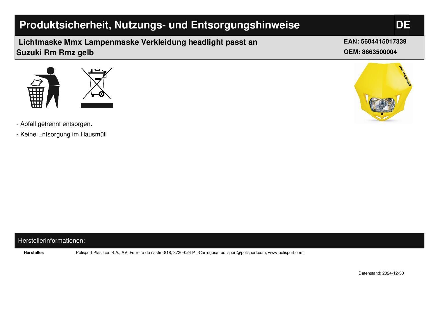 Polisport Lichtmaske Mmx Lampenmaske Verkleidung headlight passt an Suzuki Rm Rmz gelb