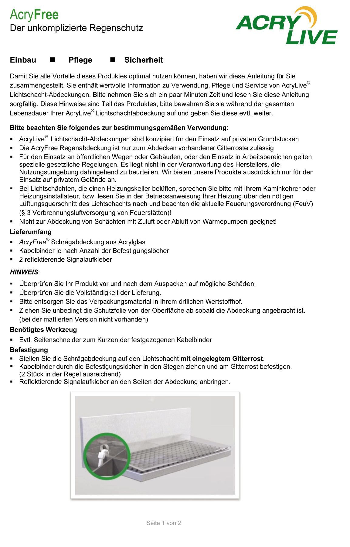 Lichtschachtabdeckung-Regenschutz für Ihren Lichtschacht AcryFree 120er Breiten