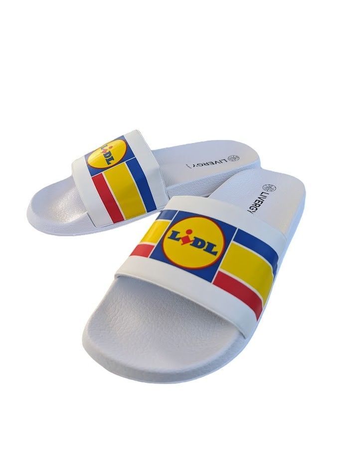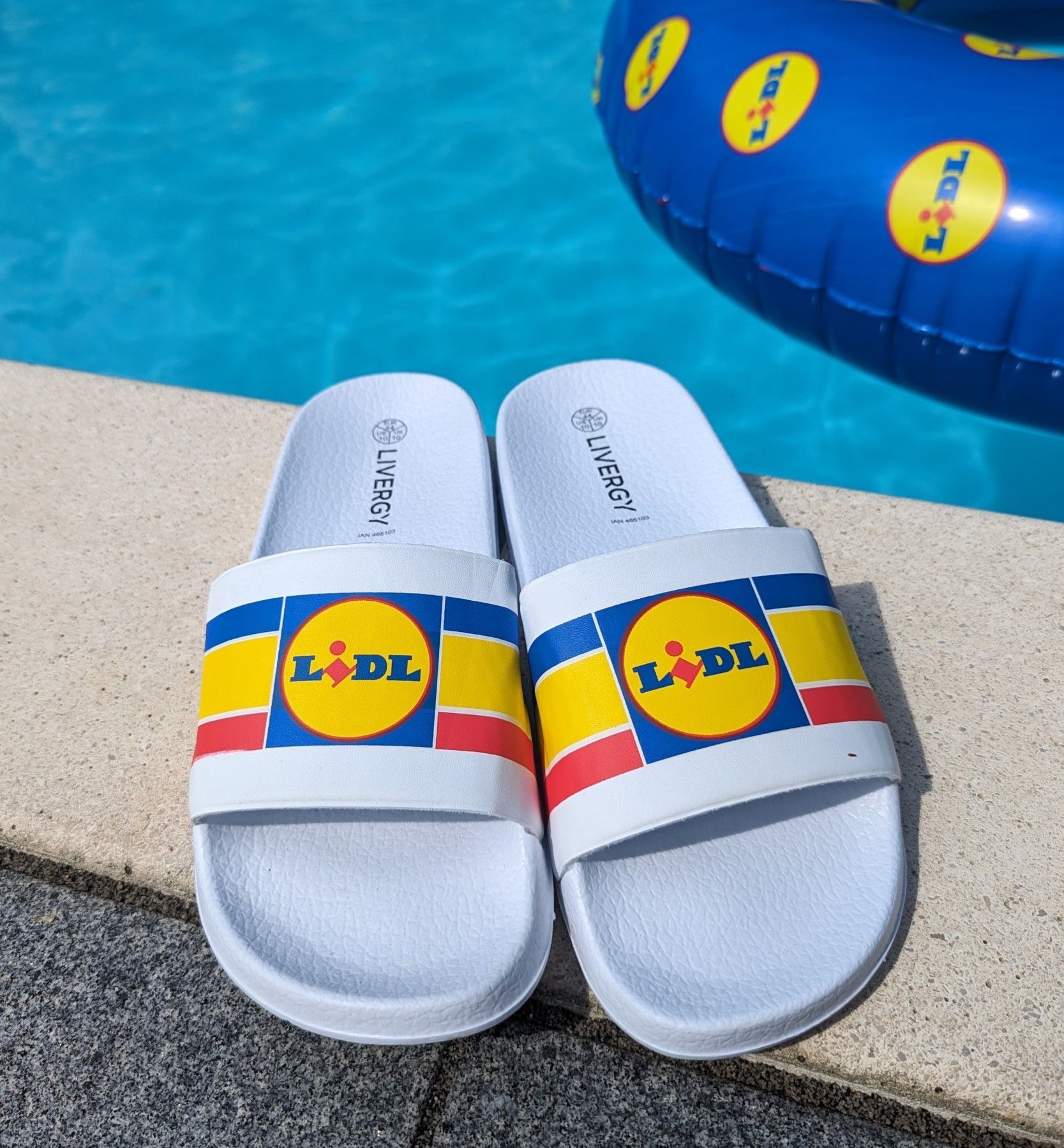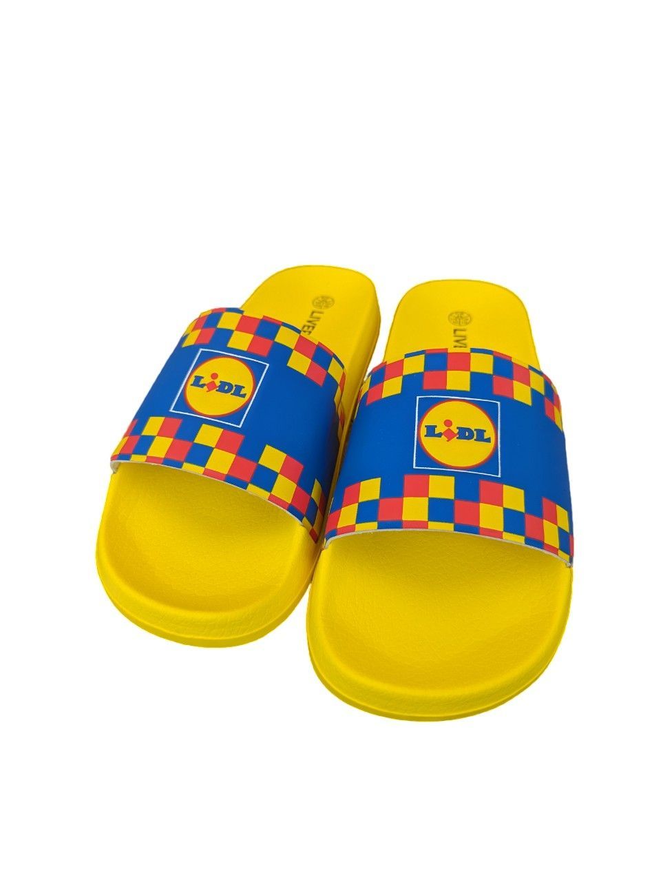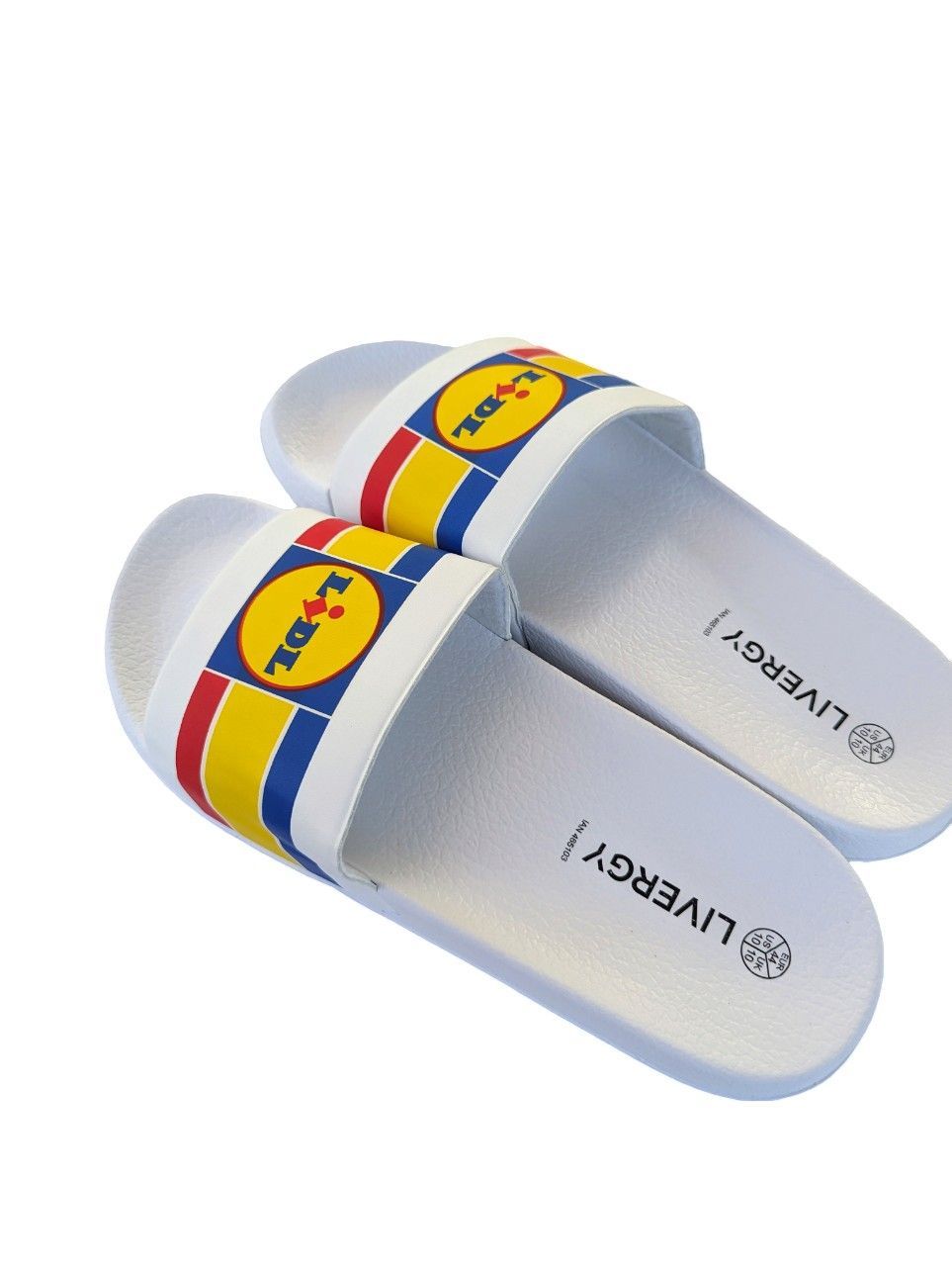 LiDL Lidlletten Badeschlappen Pantoletten Badelatschen Badeschuhe Weiß Blau Gelb