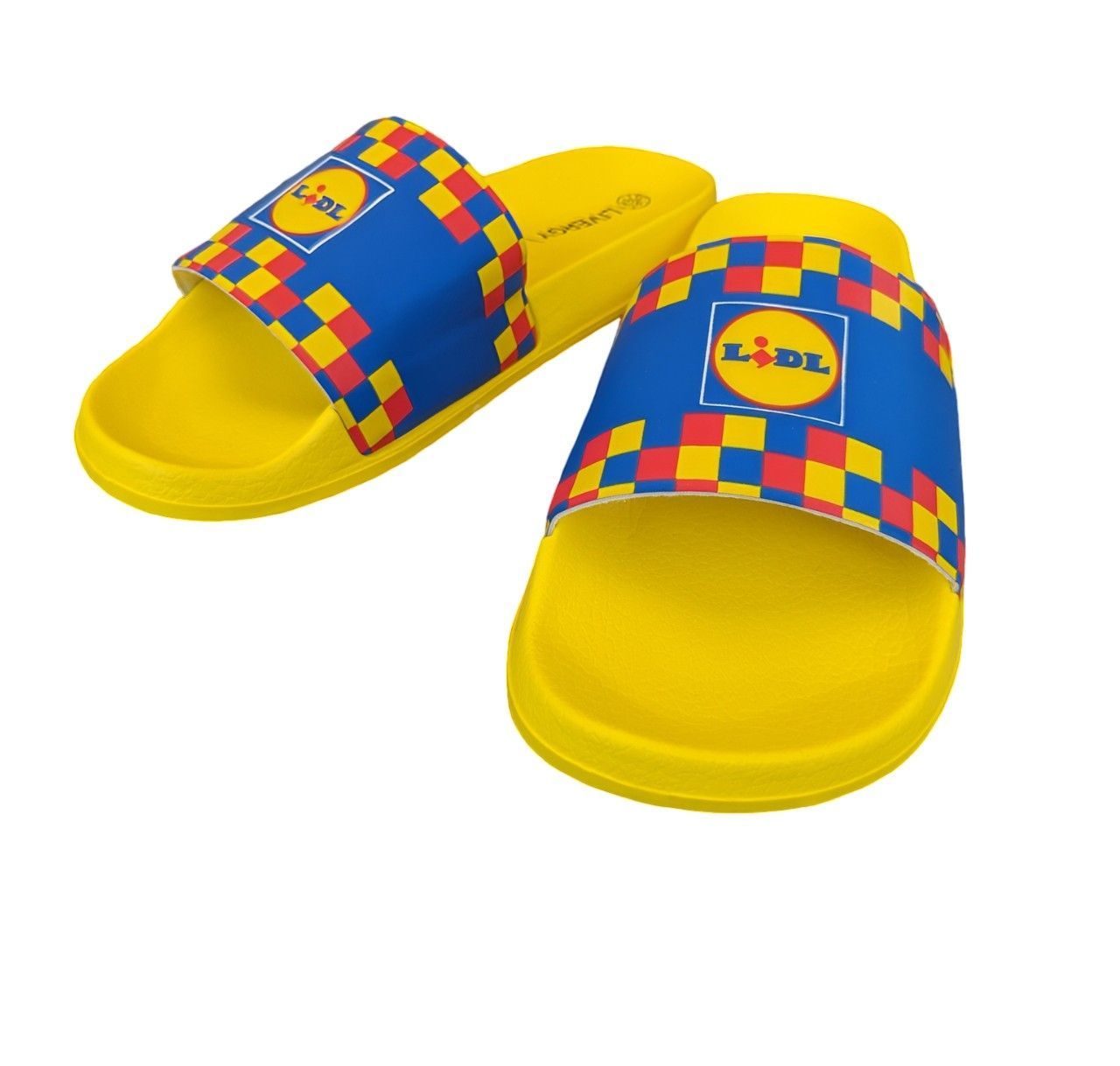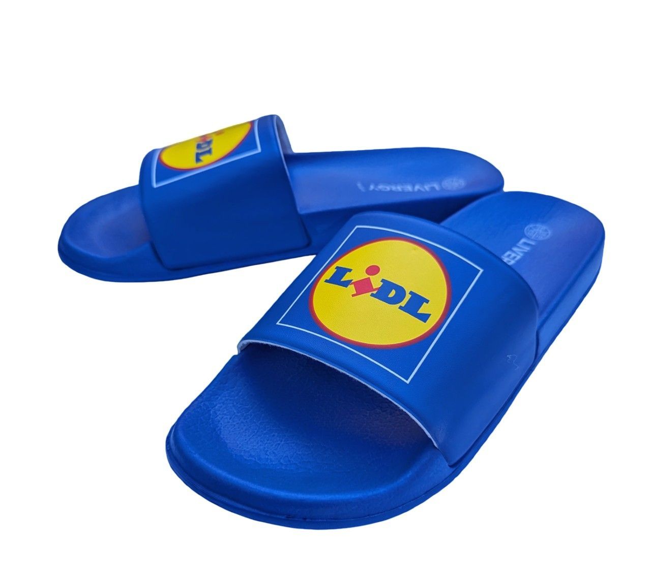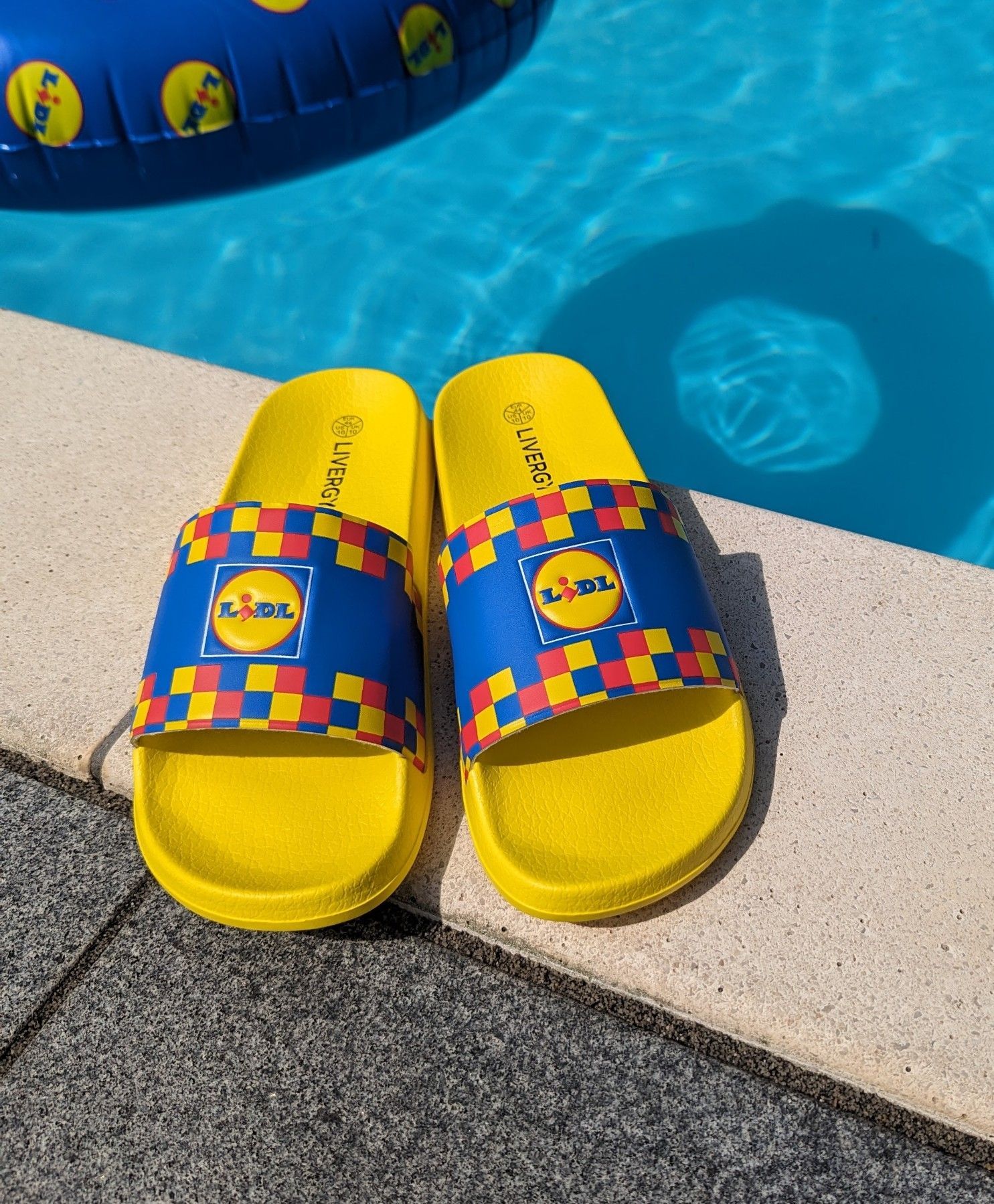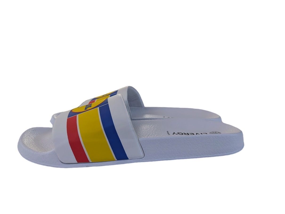 LiDL Lidlletten Badeschlappen Pantoletten Badelatschen Badeschuhe Weiß Blau Gelb