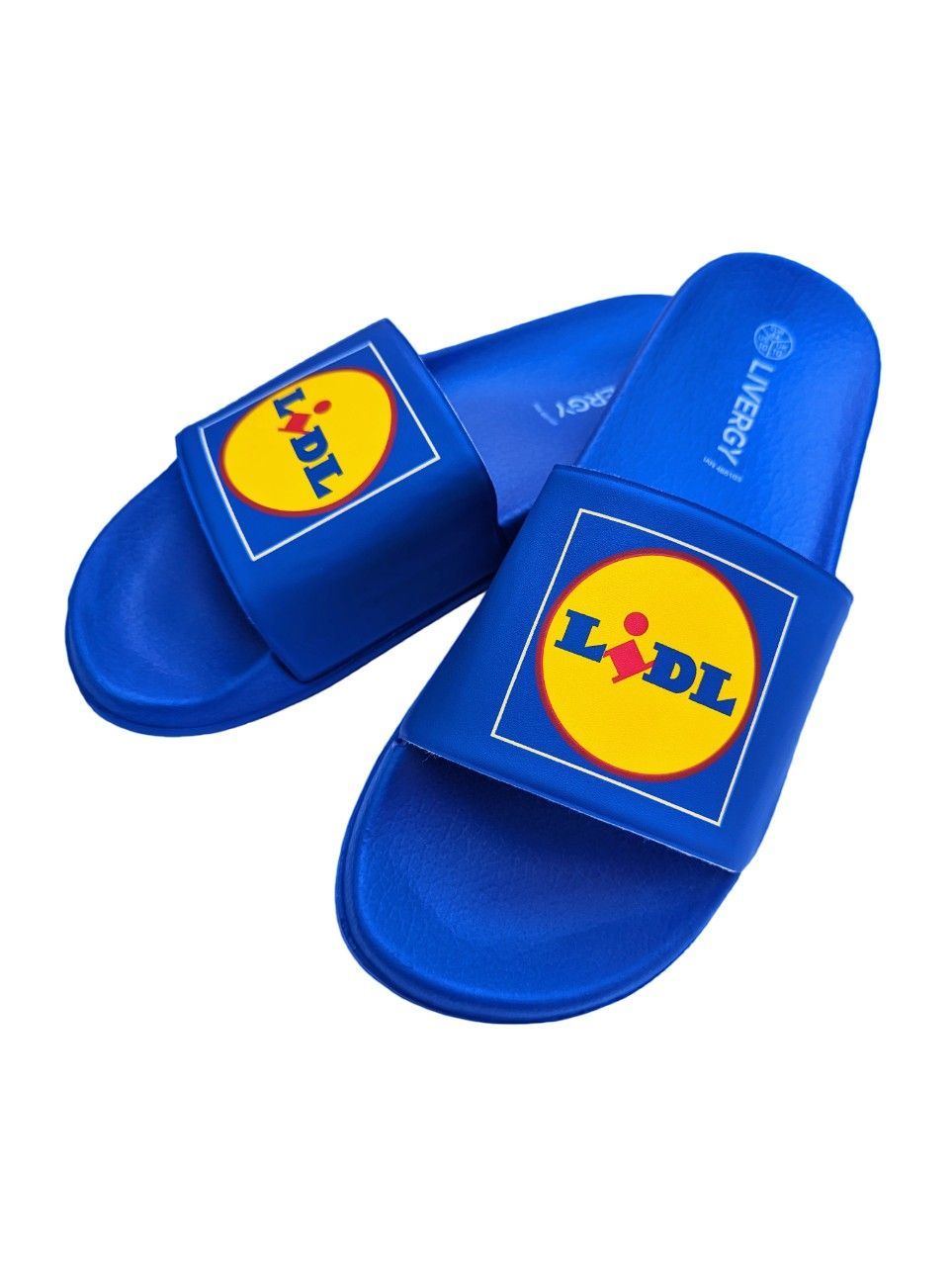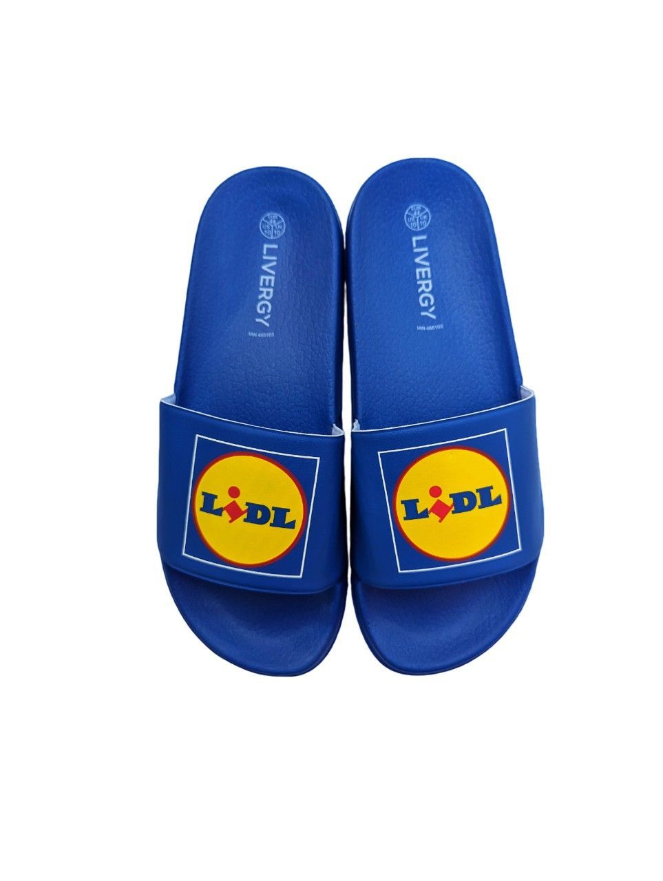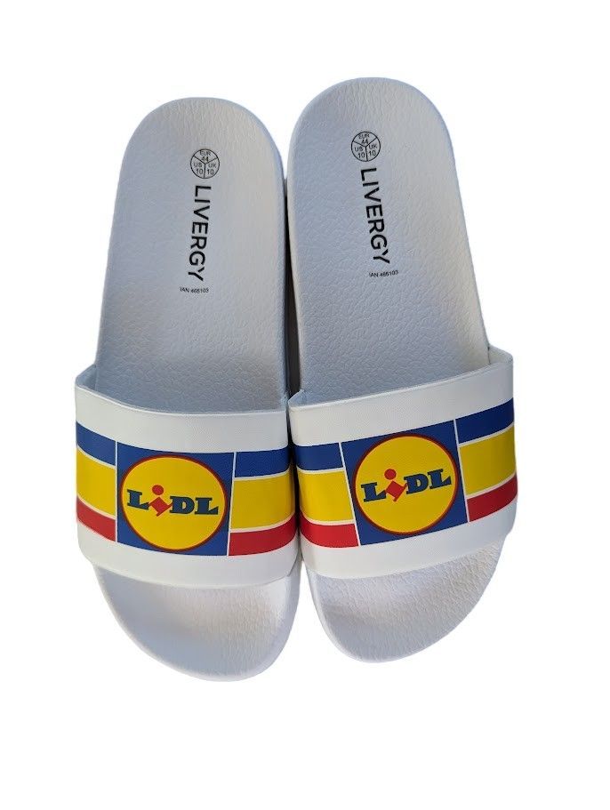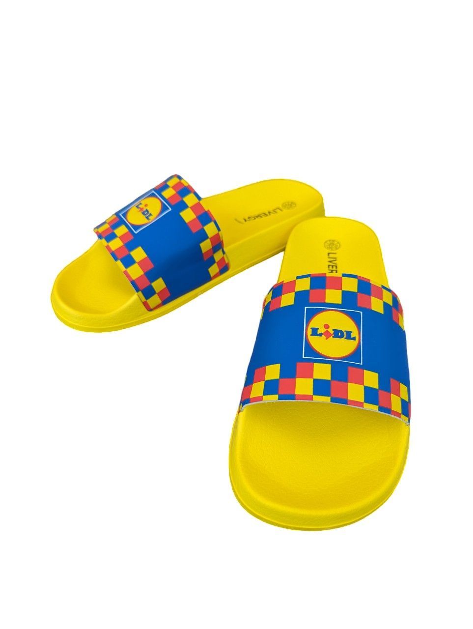 LiDL Lidlletten Badeschlappen Pantoletten Badelatschen Badeschuhe Weiß Blau Gelb