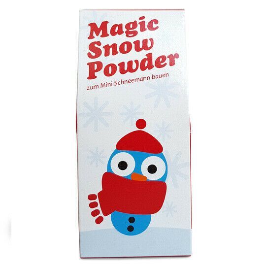 Magic Snow Powder ist ein hochergiebiges Pulver-Konzentrat, das bei Zugabe von Wasser aufflockt wie echter Schnee. Ein gehäufter Teelöffel reicht, um ein Glas voll wunderbar weißem fluffigen Schnee zu zaubern. Zum mini-Schneemann-bauen das aufgeflockte Magic Snow Powder zuerst einige Zeit ins Eisfac