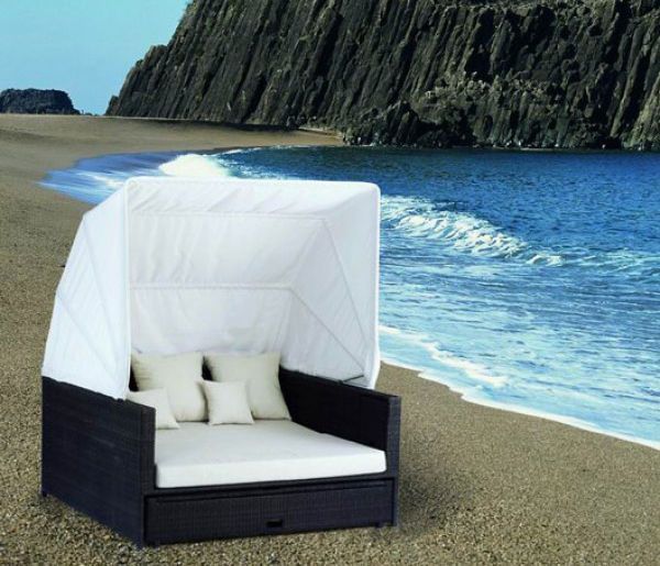 Liegeinsel Beach Lounge black braids Gartenliege Strandkorb Garten Polyrattan