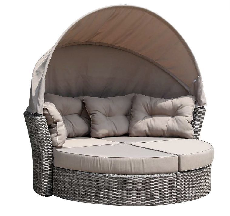 Liegeinsel Rattan Grau Bicolor