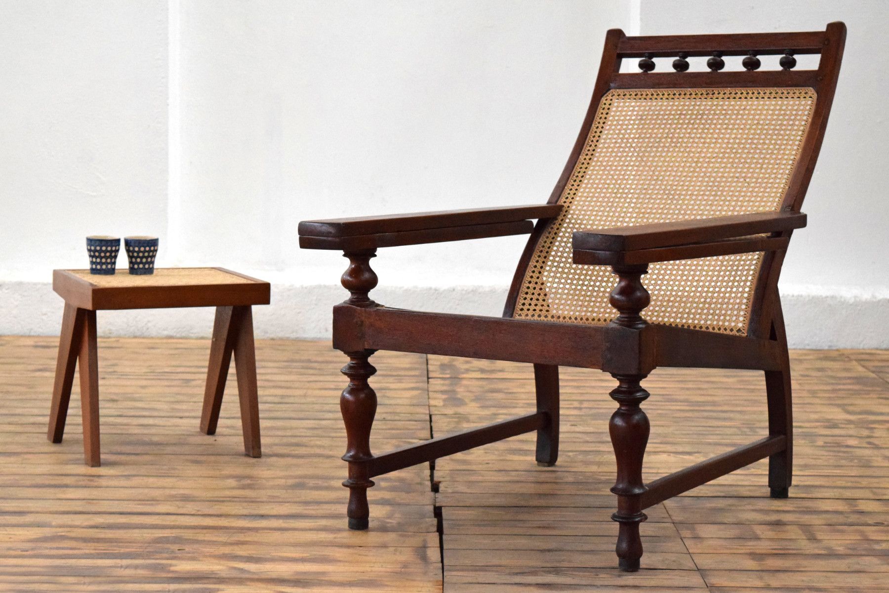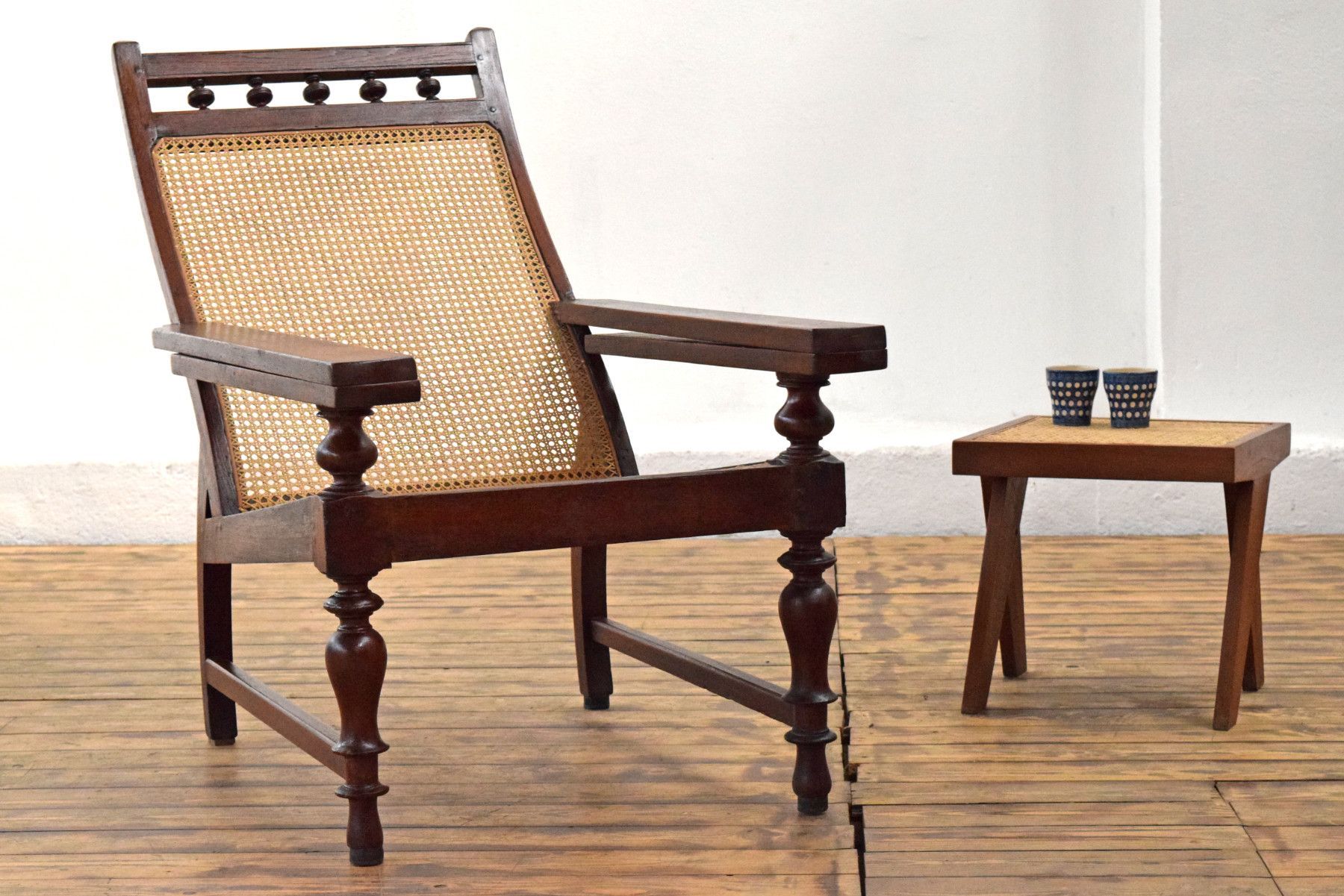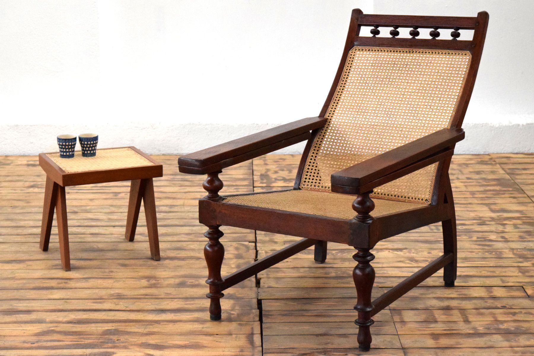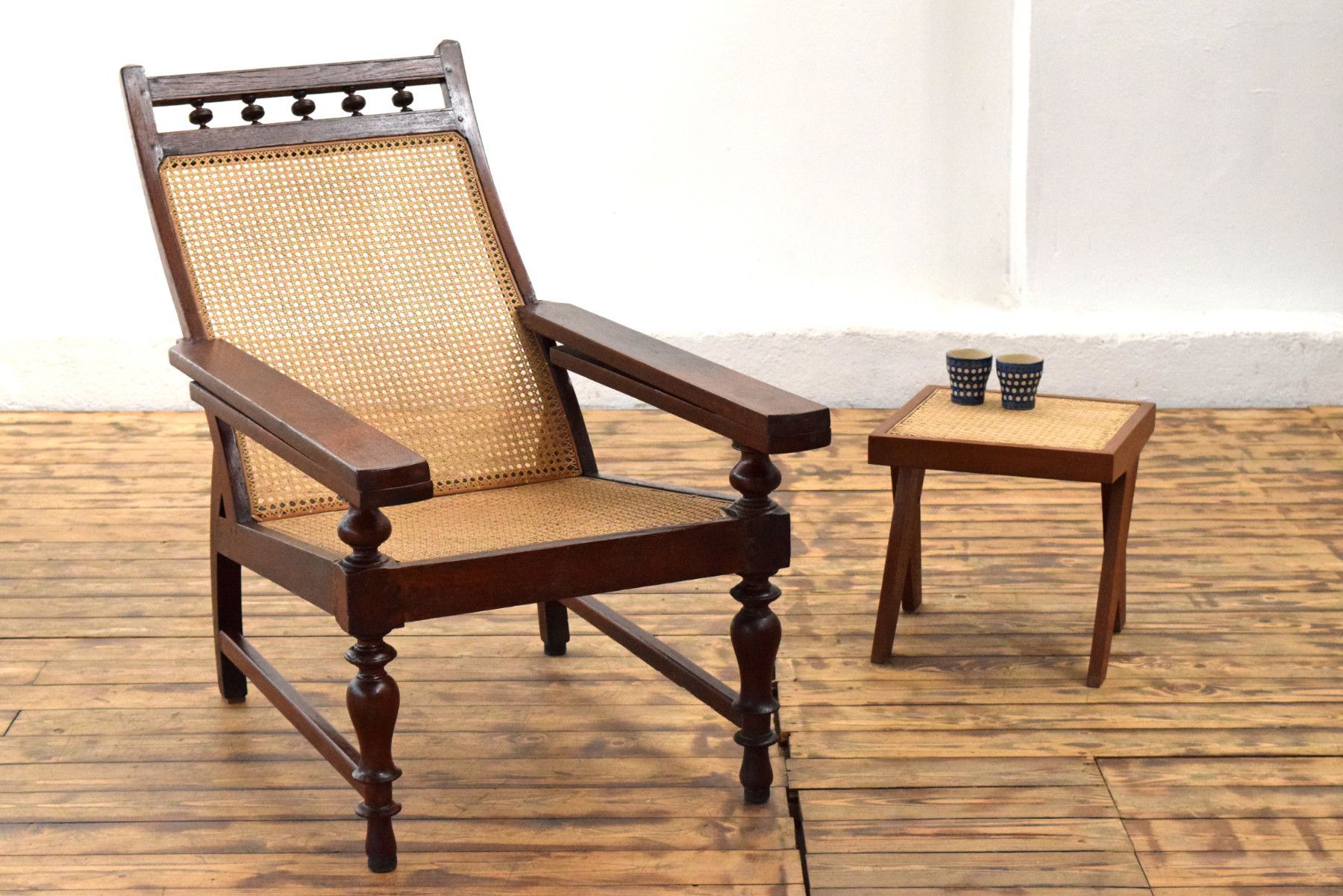 antiker Britisch- Kolonialer Liegestuhl (Planters Chair) Traggerüst aus massivem Teakholz Sitz- und Lehnenfläche: handgenüpftes Geflecht aus Peddigrohr gepflegtes Möbel, stabil, belastbar, schöner Vintage Zustand Sitzhöhe 43cm, Lehnenhöhe 95cm, Breite 64cm, Tiefe 120cm mit Schwenkauzug unter den Armlehnen Der Versand innerhalb Deutschlands ist kostenlos.Verkauf ohne Deko