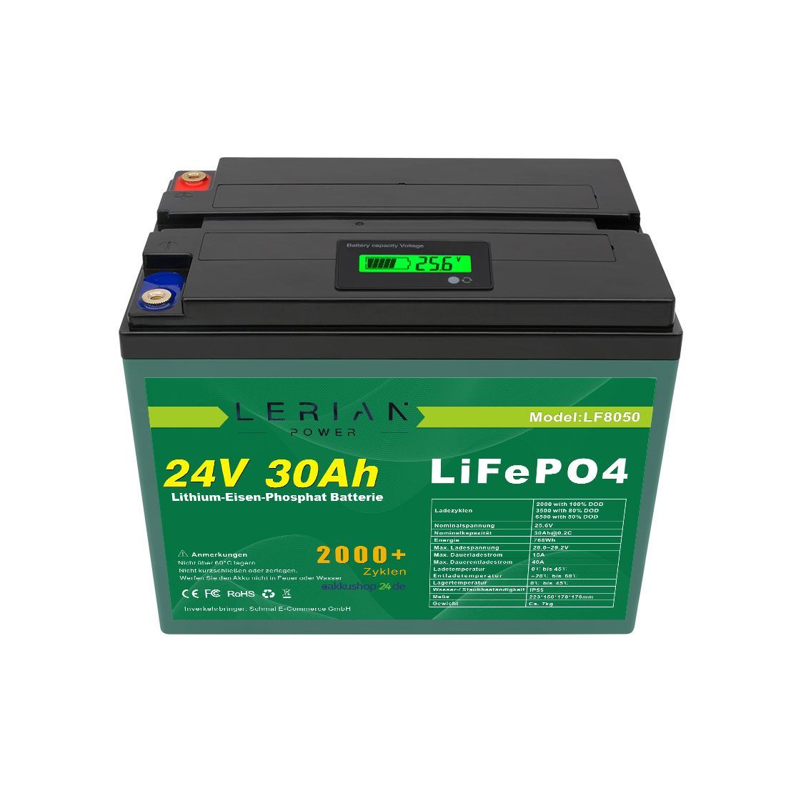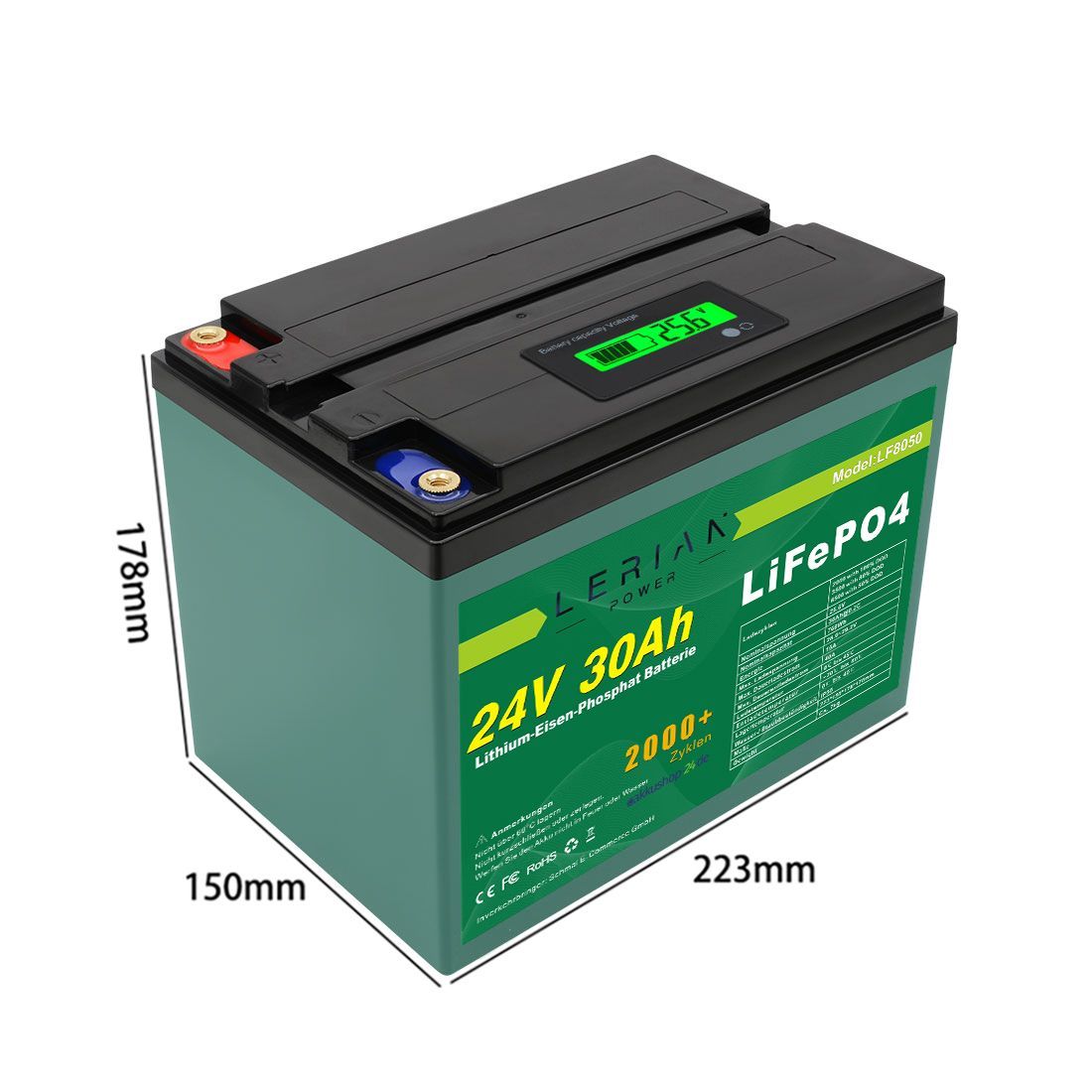 LiFePO4 Akku 24V 30Ah 720Wh 30A Lithium-Eisen-Phosphat Batterie für Camping Boot