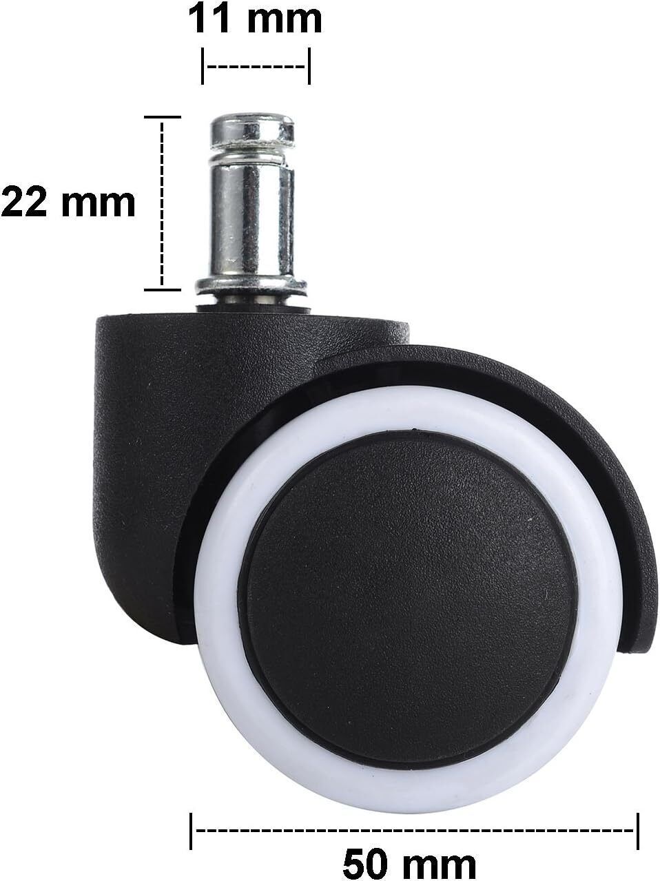 LIHAO 5x Hartbodenrollen Drehstuhlrollen 11mm / 50mm Rollenset fér Bérostuhl