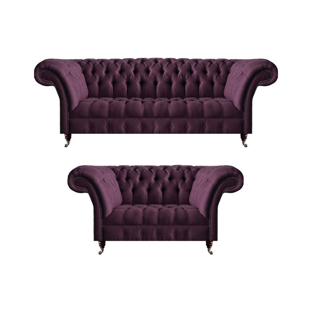 Lila Chesterfield Garnitur Textilsofas Wohnzimmer Dreisitzer 2-Sitzer