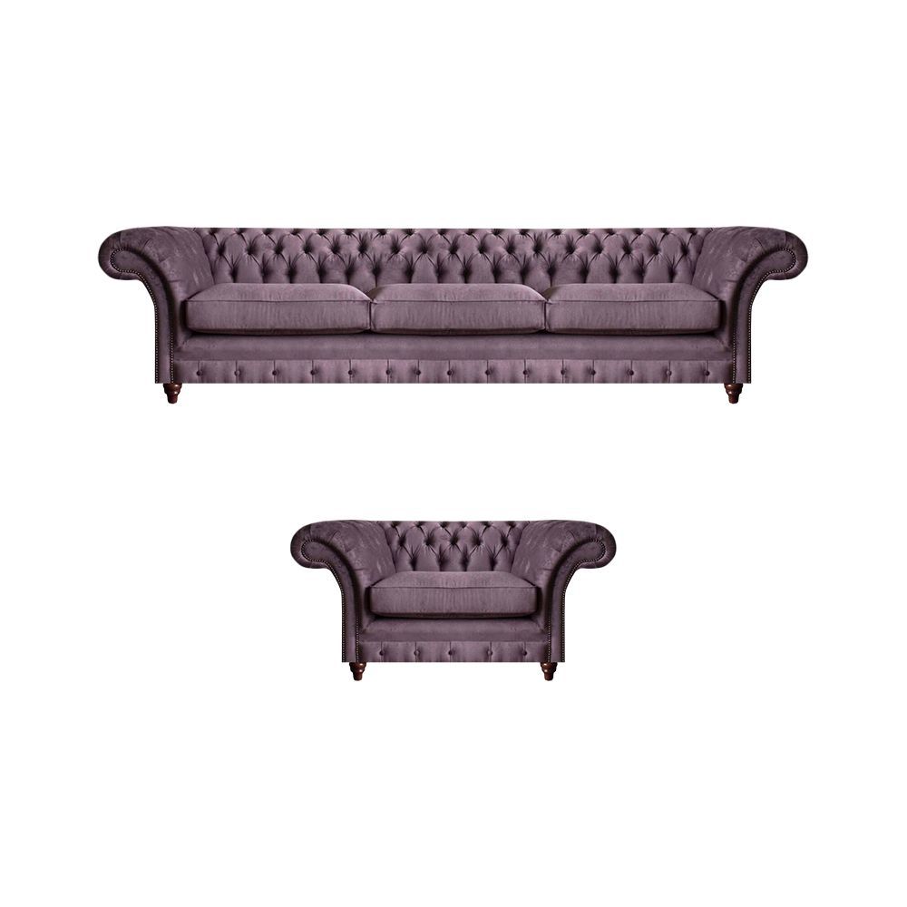 Lila Chesterfield Polstergarnitur Stilvoller Dreisitzer Textil Sessel