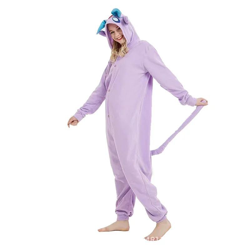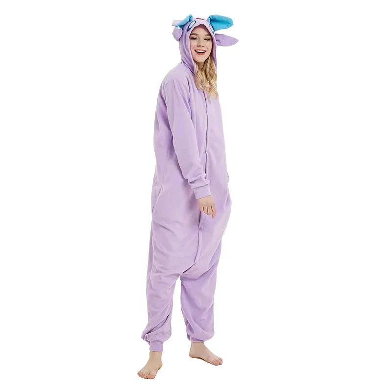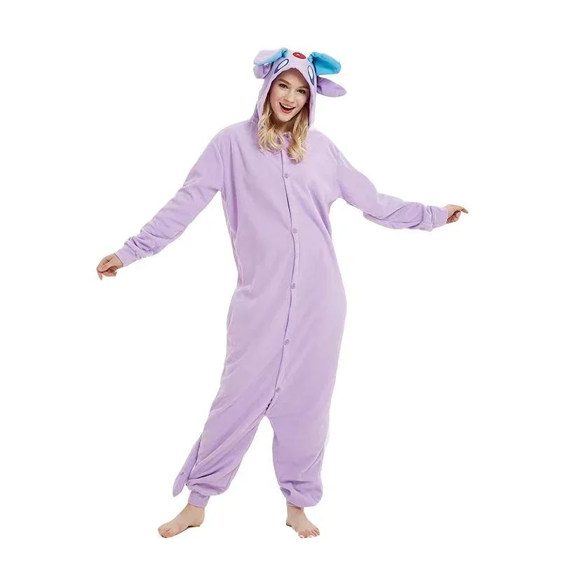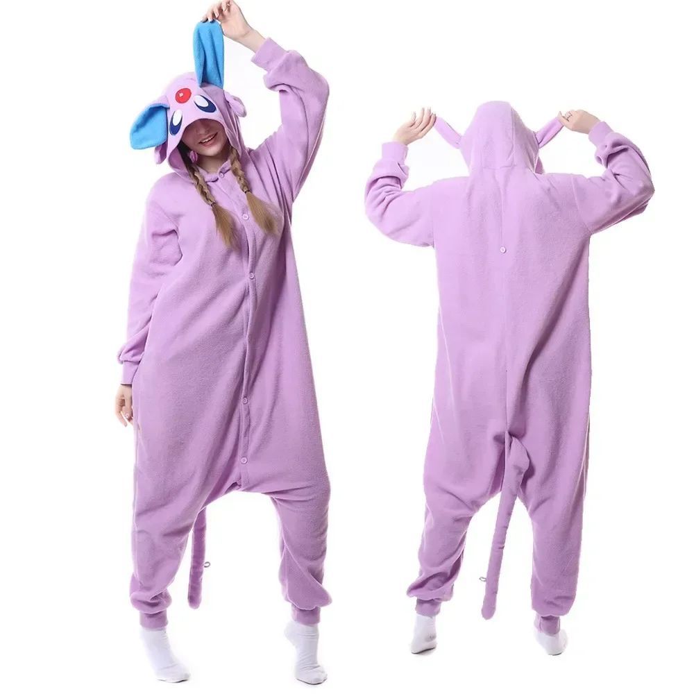Lila Espeon Kigurumi Onesie Erwachsene Damen Herren Tier Cosplay Pyjamas Plusch