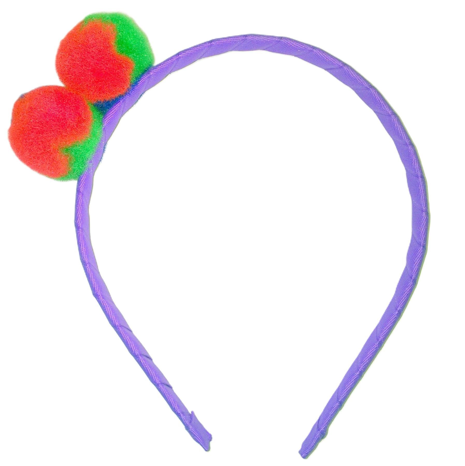 Lila Haarreif mit 2 rot-grün-blauen Pompons