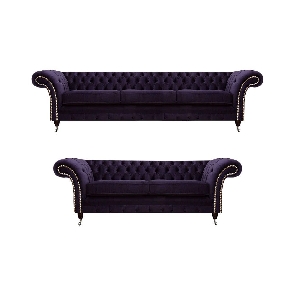 Lila Sofagarnitur Dreisitzer mit Zweisitzer Sofas Luxus Chesterfield Polster