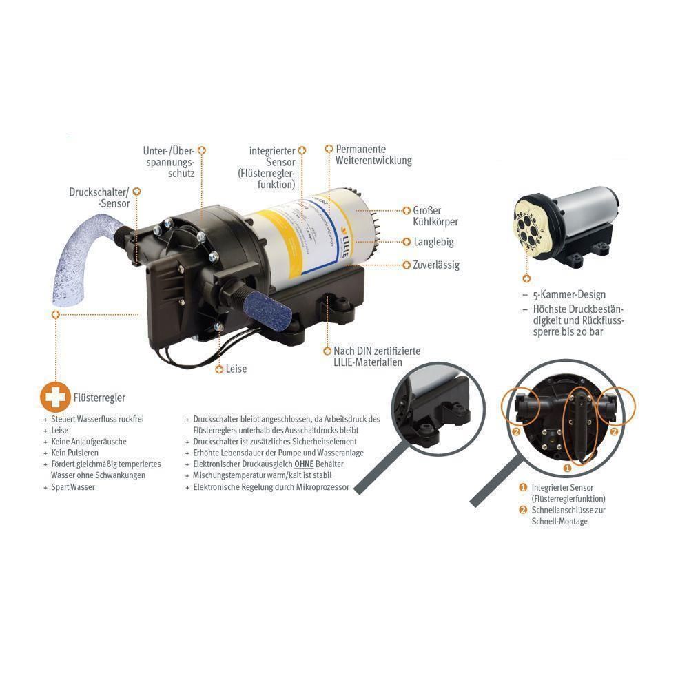 Lilie® Sensor-Druckmembranpumpe 12 Volt, 14 l/min, 4,5 bar LP1001