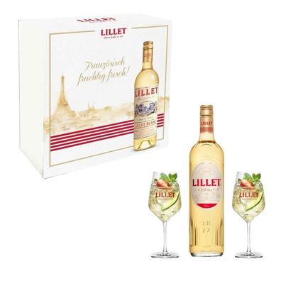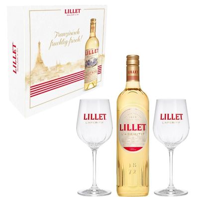 • Lillet Geschenkset - Blanc Aperitiv de France 750ml (17% Vol) + + 2 Wein Gläser