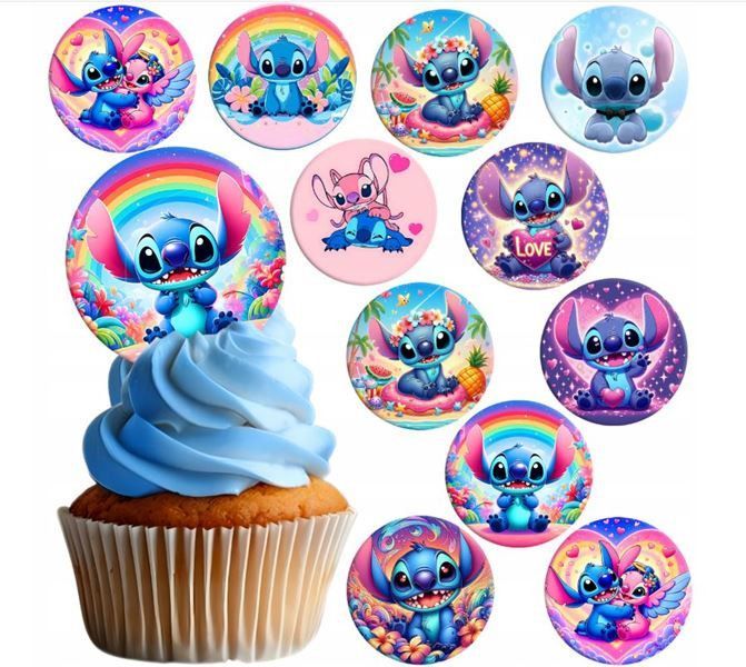 Lilo & Stitch Essbar 12 Muffin Zuckermasse Tortenbild Tortenaufleger s01