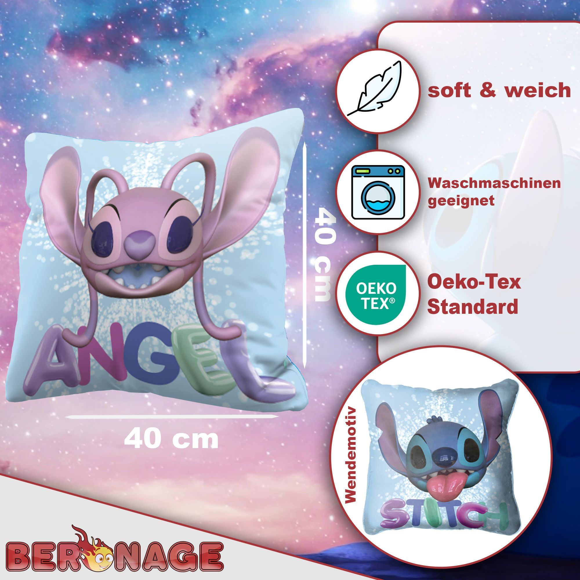 Lilo & Stitch Kissen Angel and Stitch 40x40cm Kuschelkissen passend zur Bettwäsche