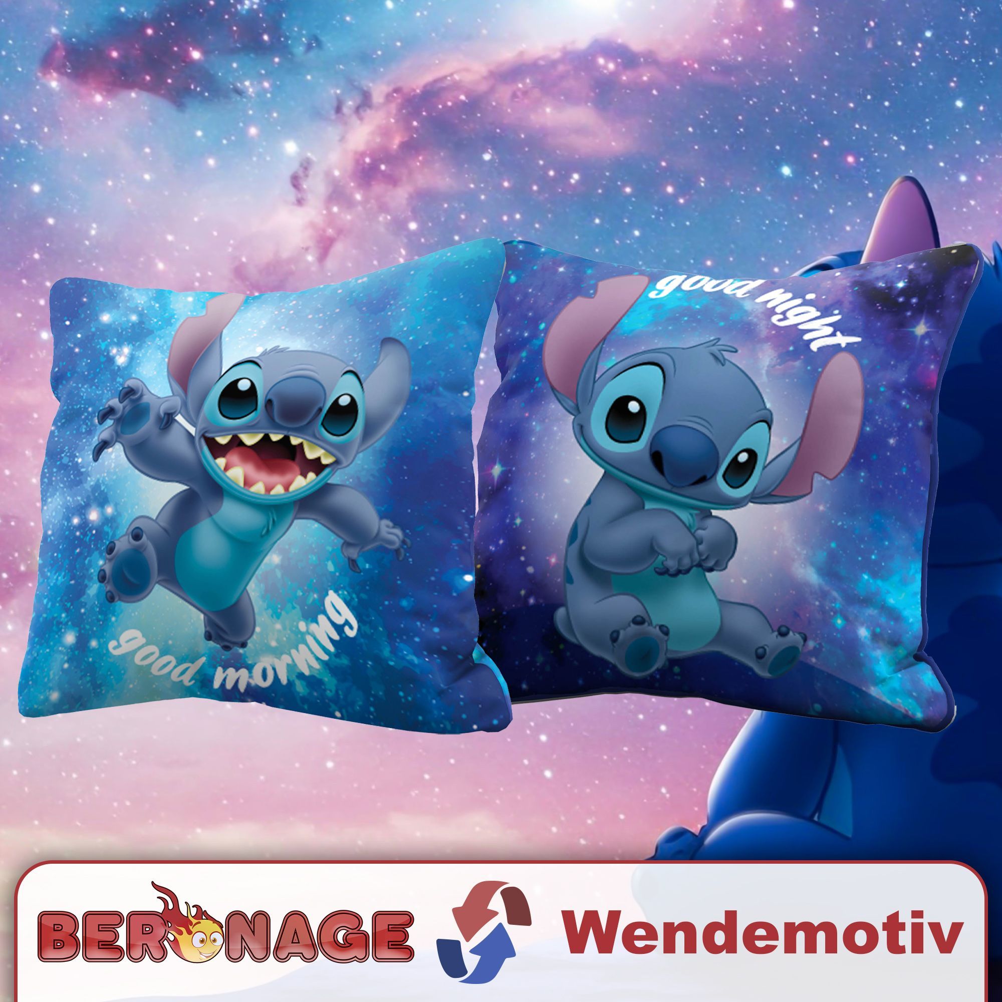 Lilo & Stitch Kissen Out of The World 40x40 cm Good Morning Good Night Wendekissen