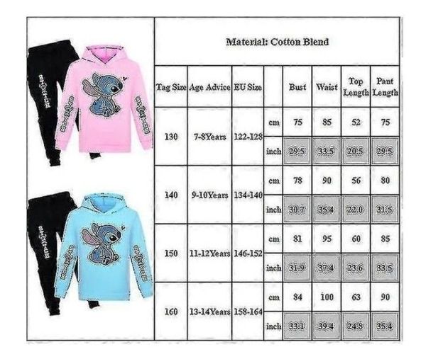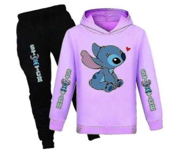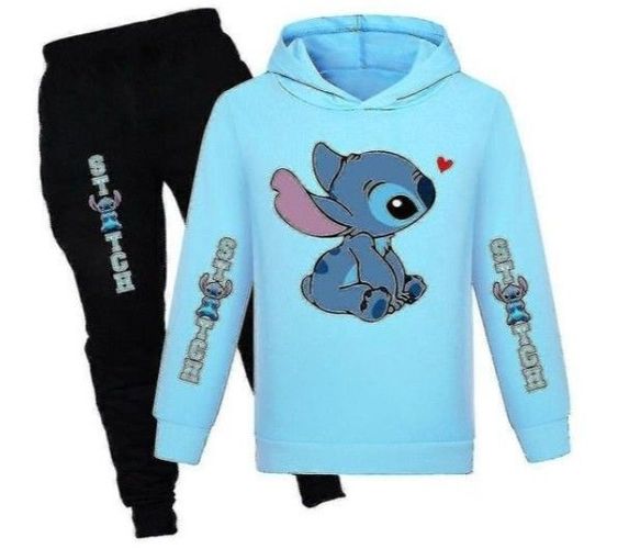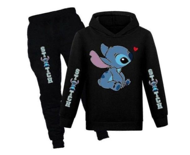 Lilo & Stitch Print Kinder Trainingsanzug Set lässig Kapuzenpullover Activewear