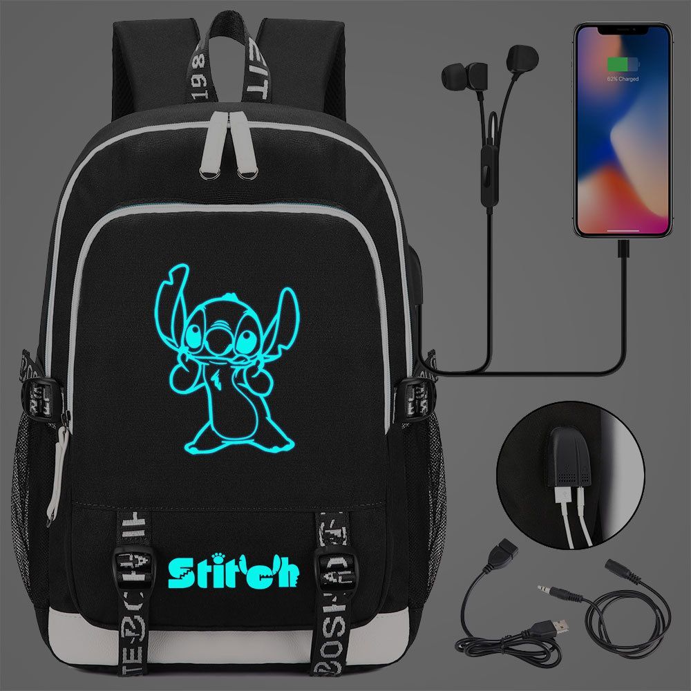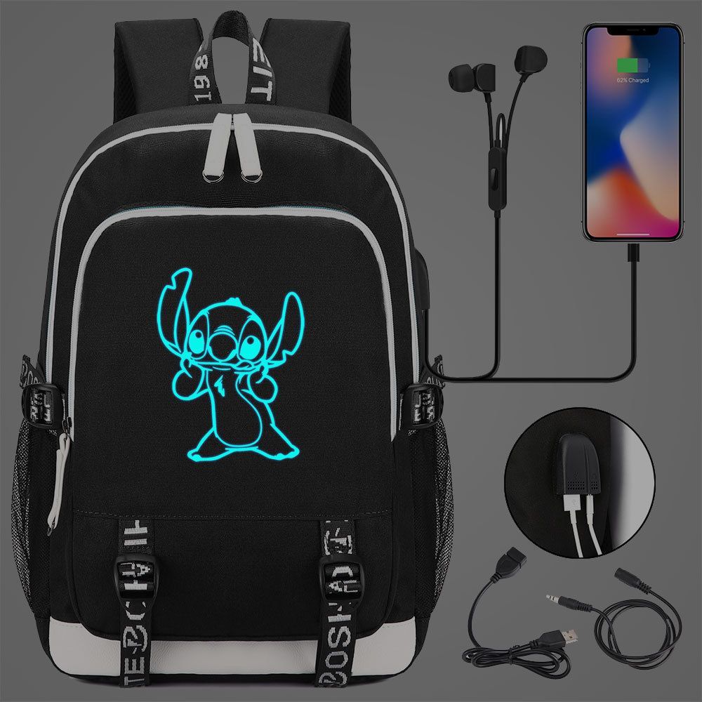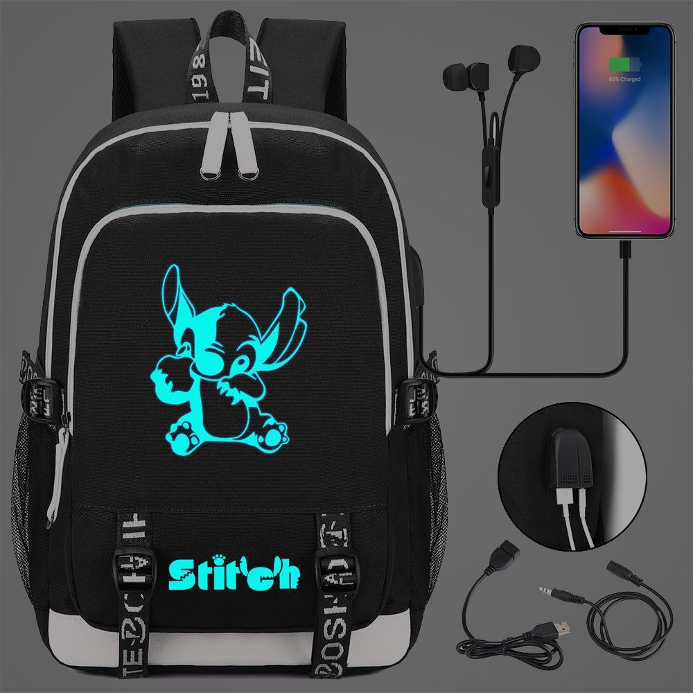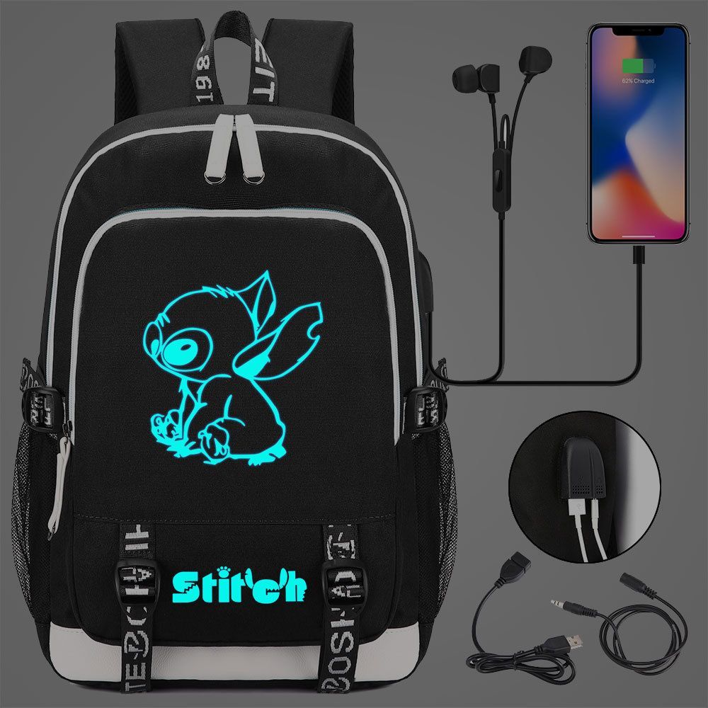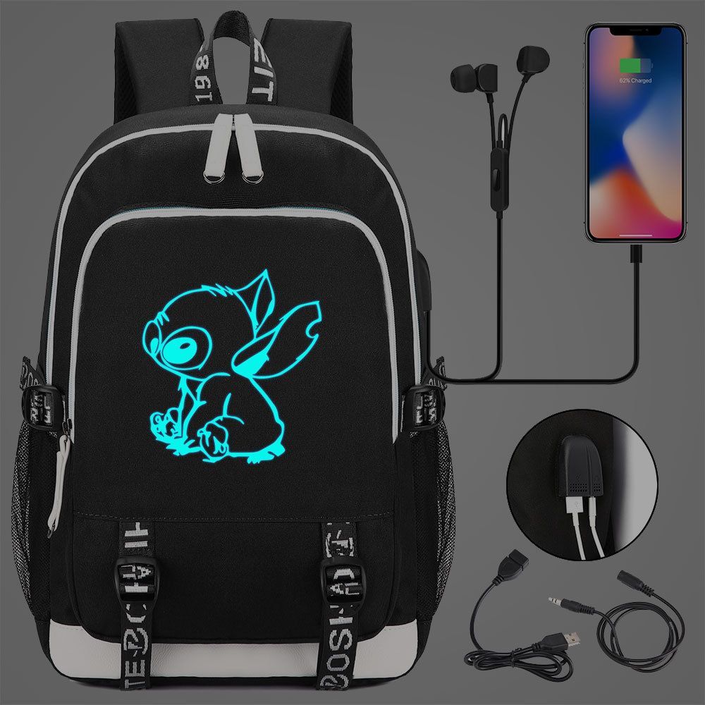 Lilo&Stitch Schultasche Merch Stitch Backpack Noctilucent USB-Lade Studenten Rucksack