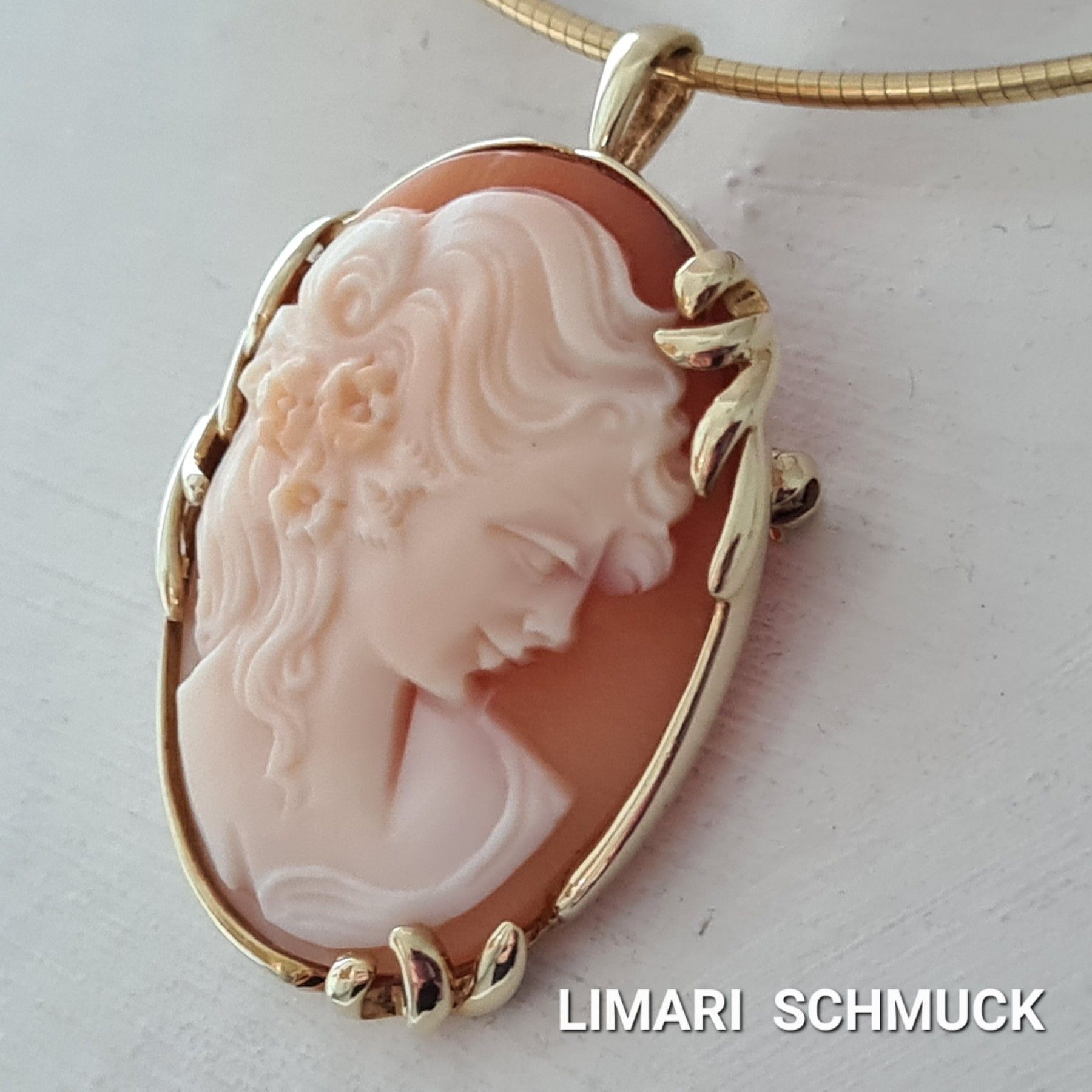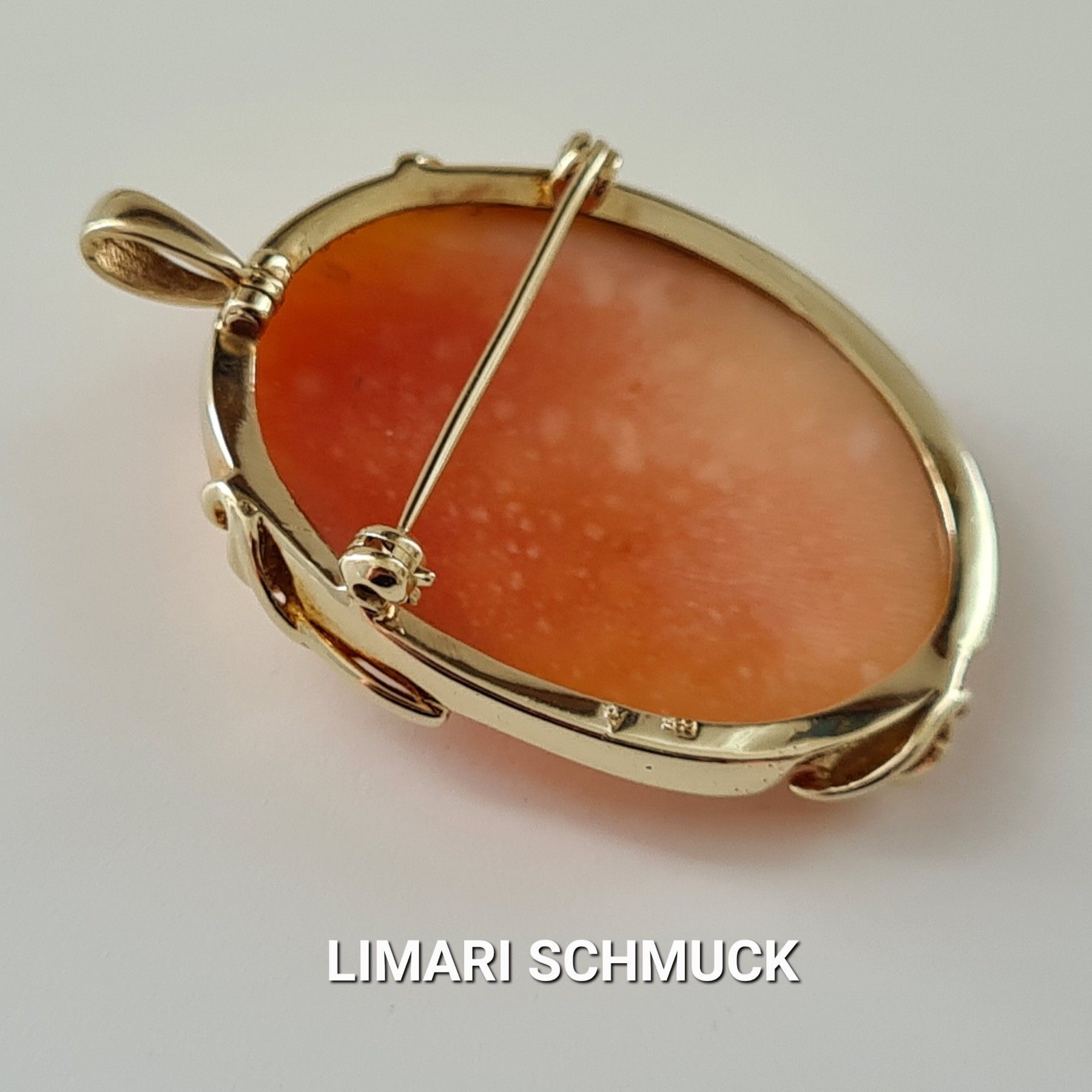 Limari Schmuck Anhänger Brosche mit Gemme 14 k Gold 585