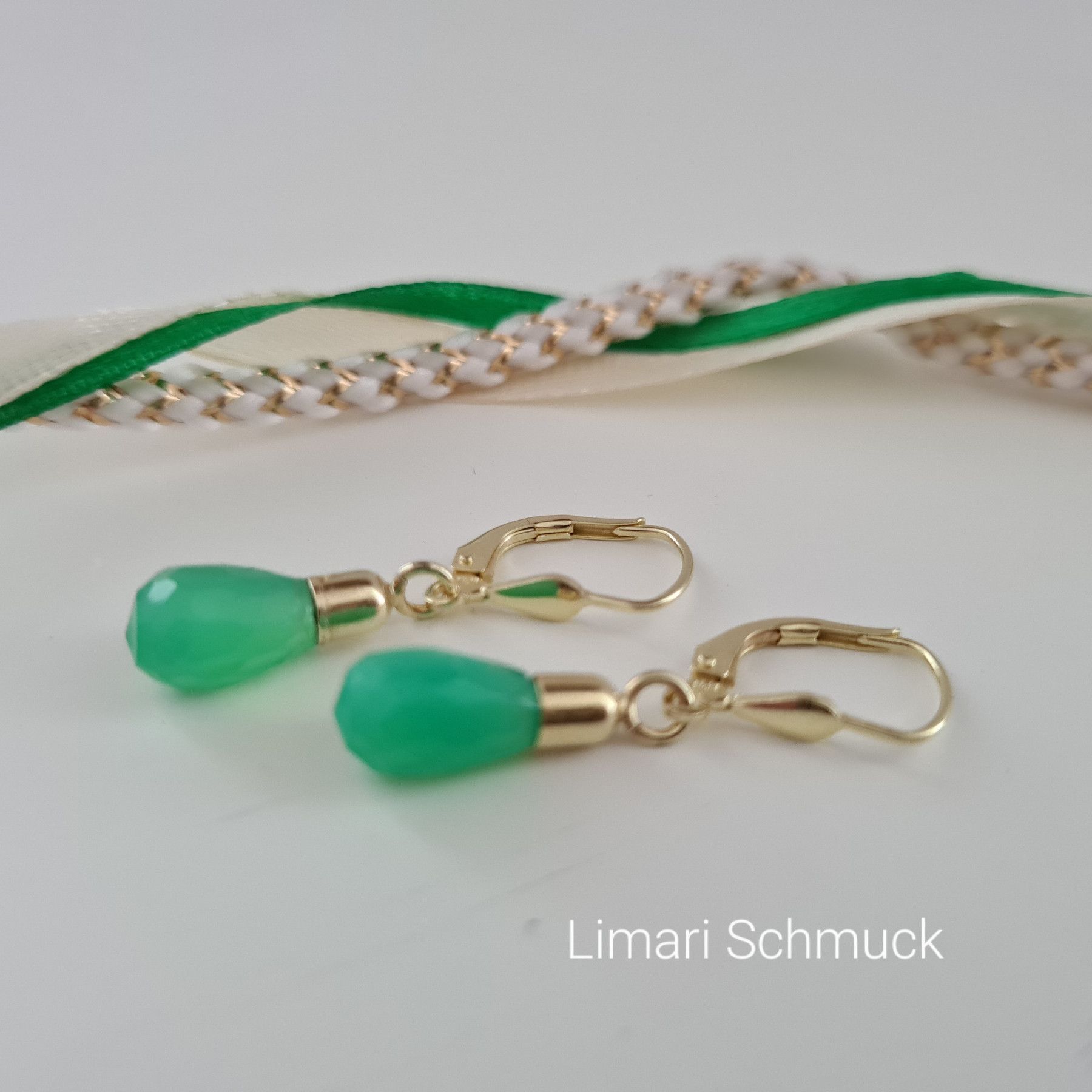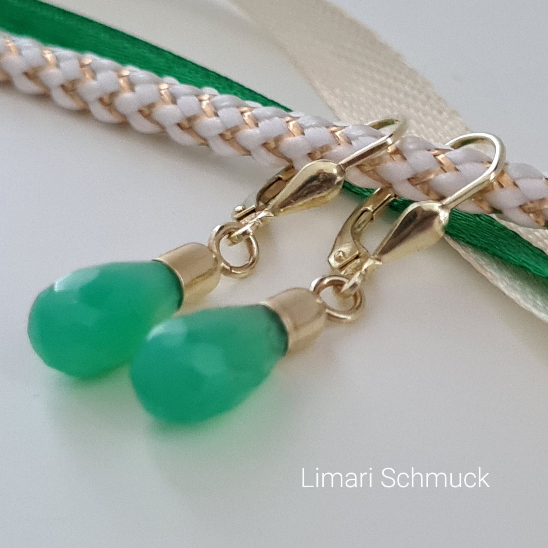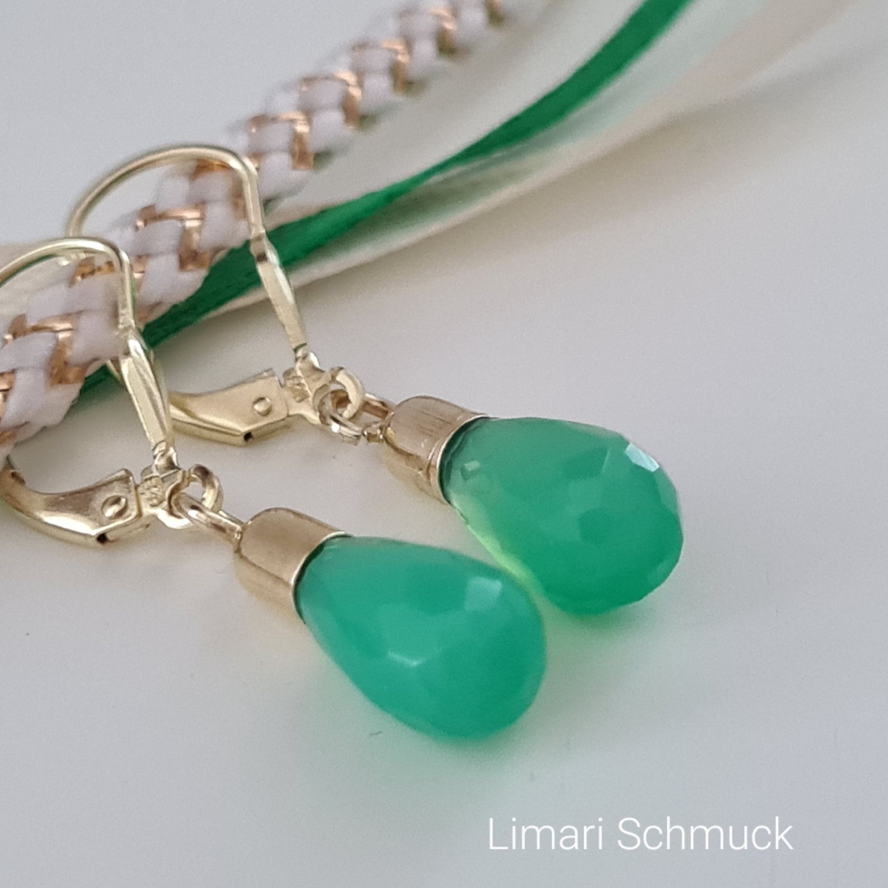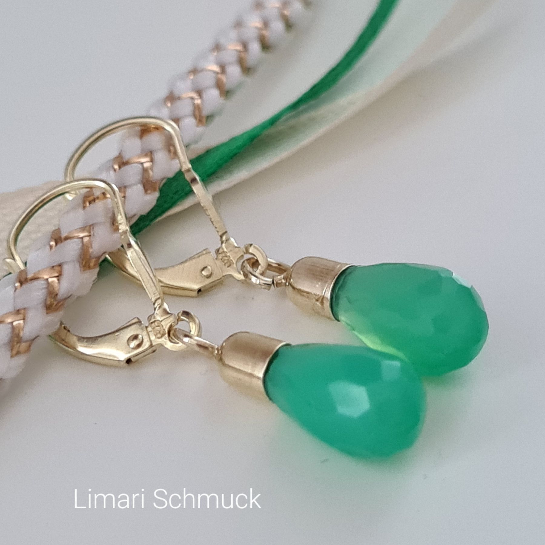 Limari Schmuck Chrysopras Ohrringe Tropfen Pampel Gold auf Silber 925