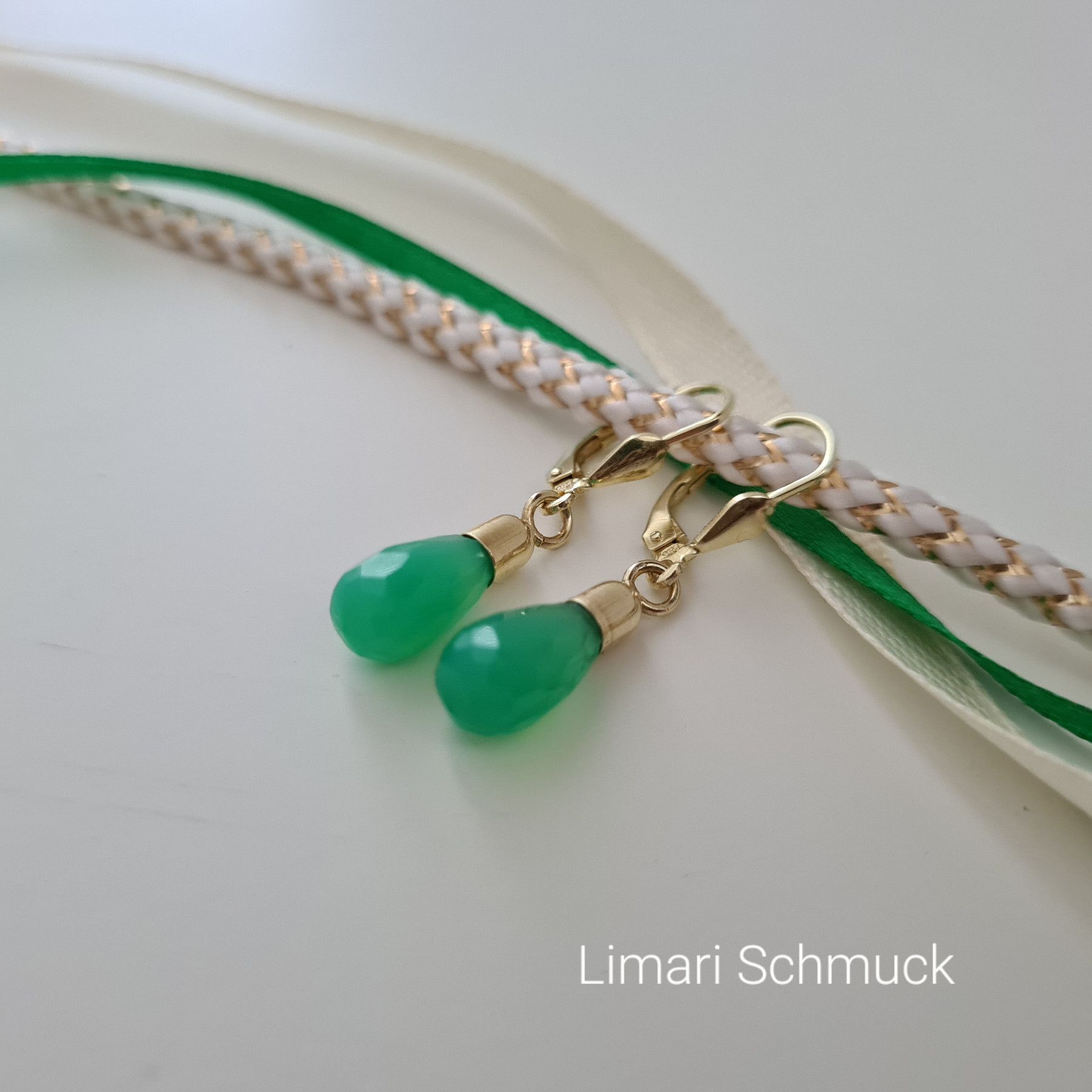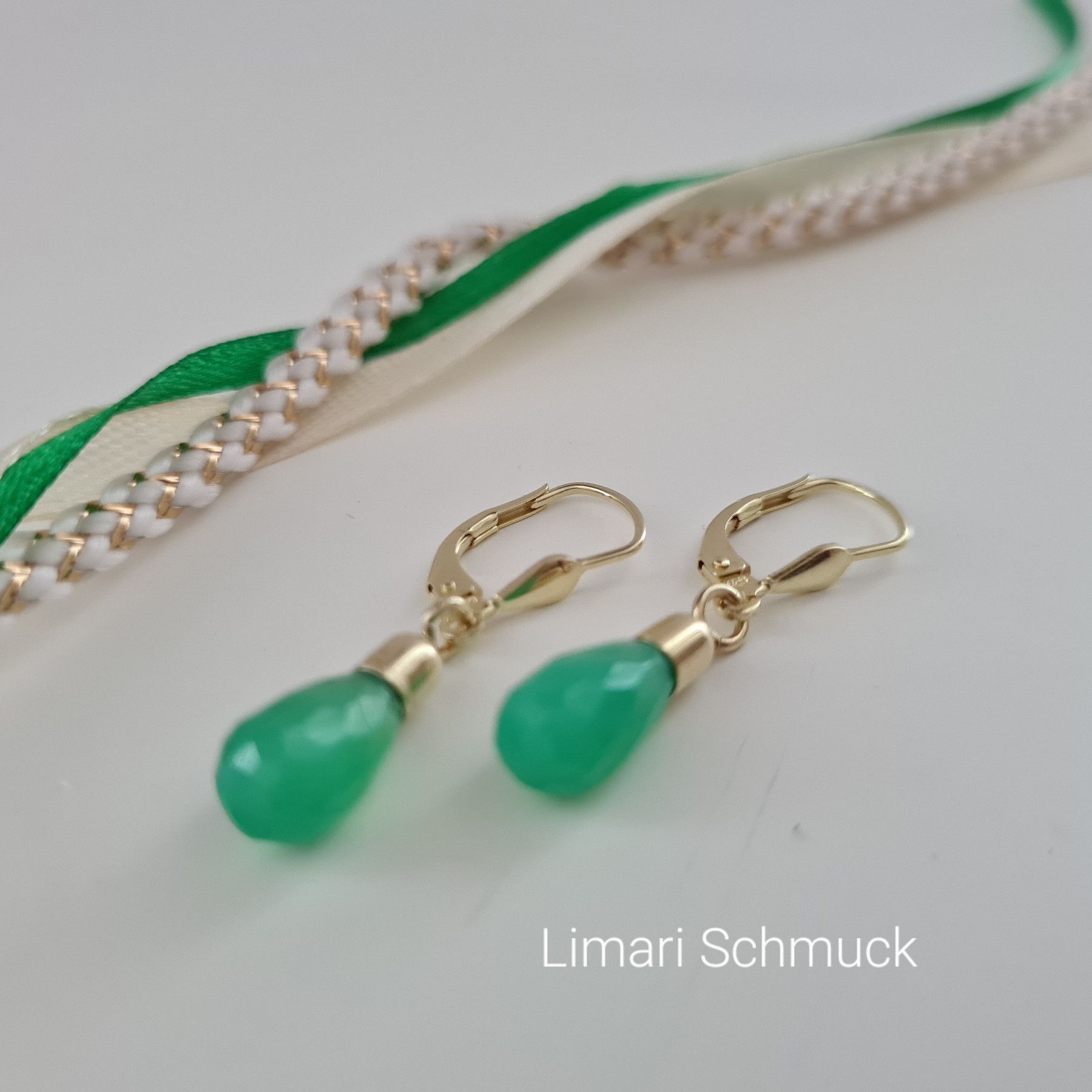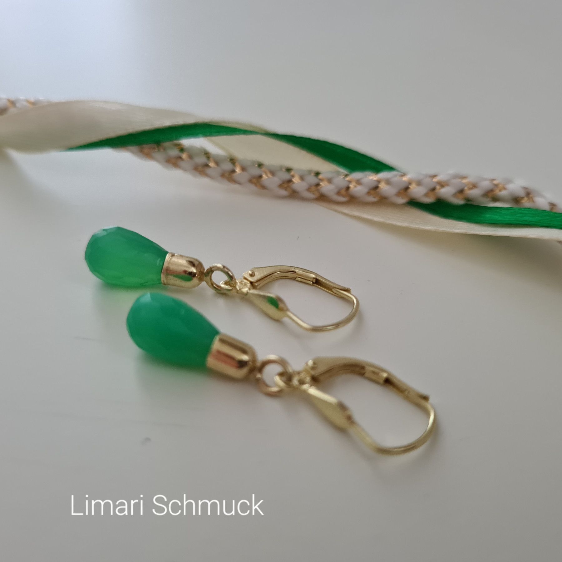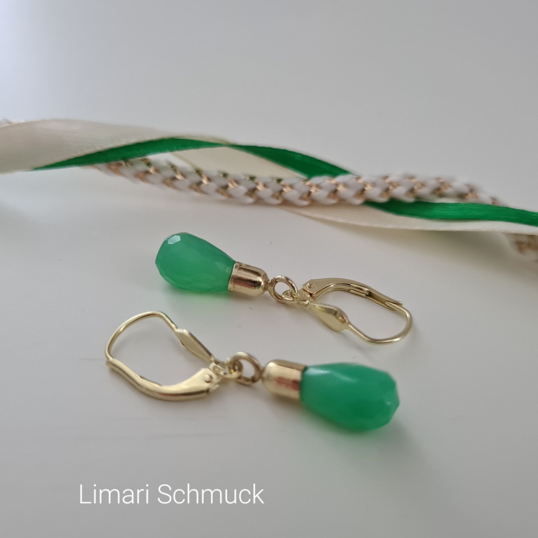 Limari Schmuck Chrysopras Ohrringe Tropfen Pampel Gold auf Silber 925