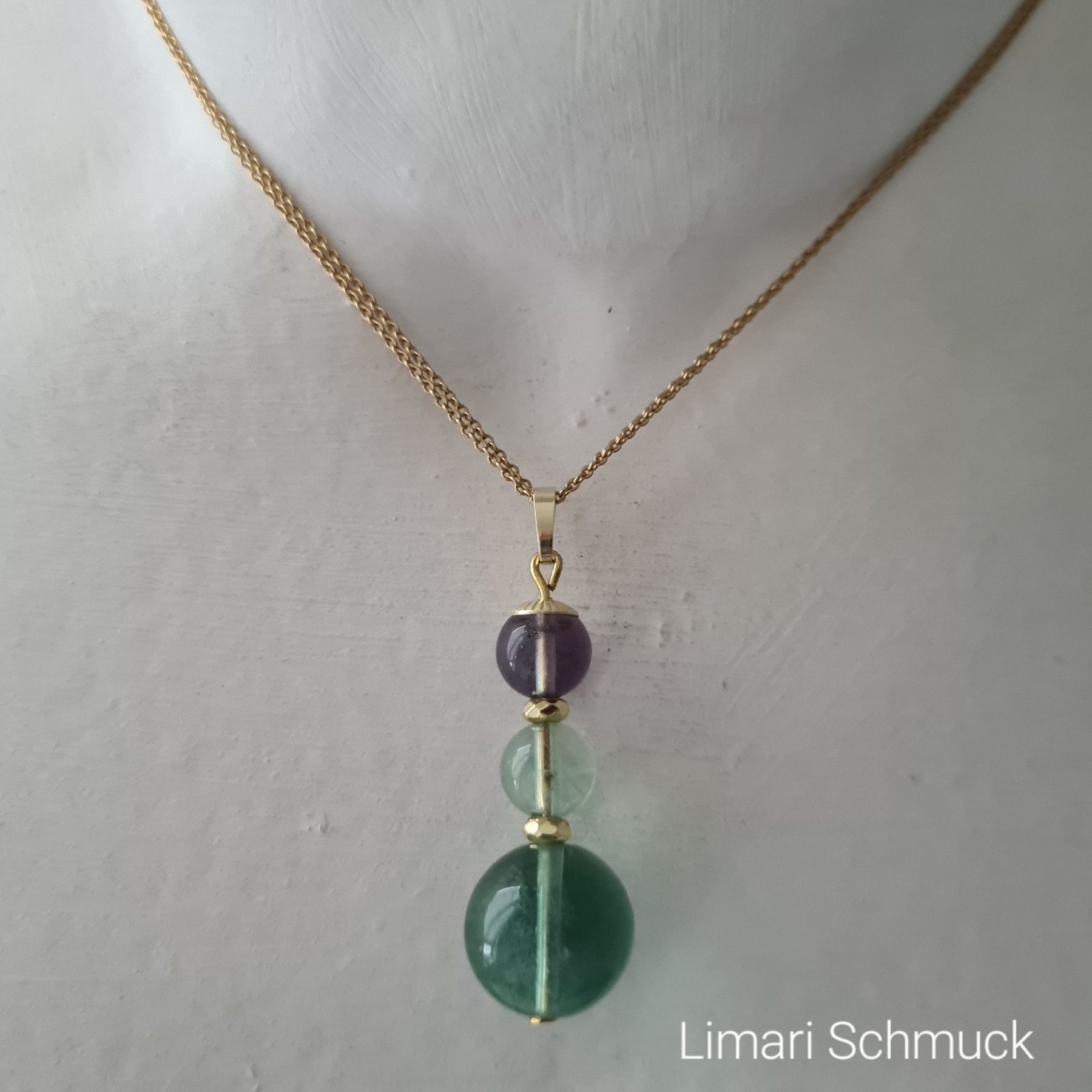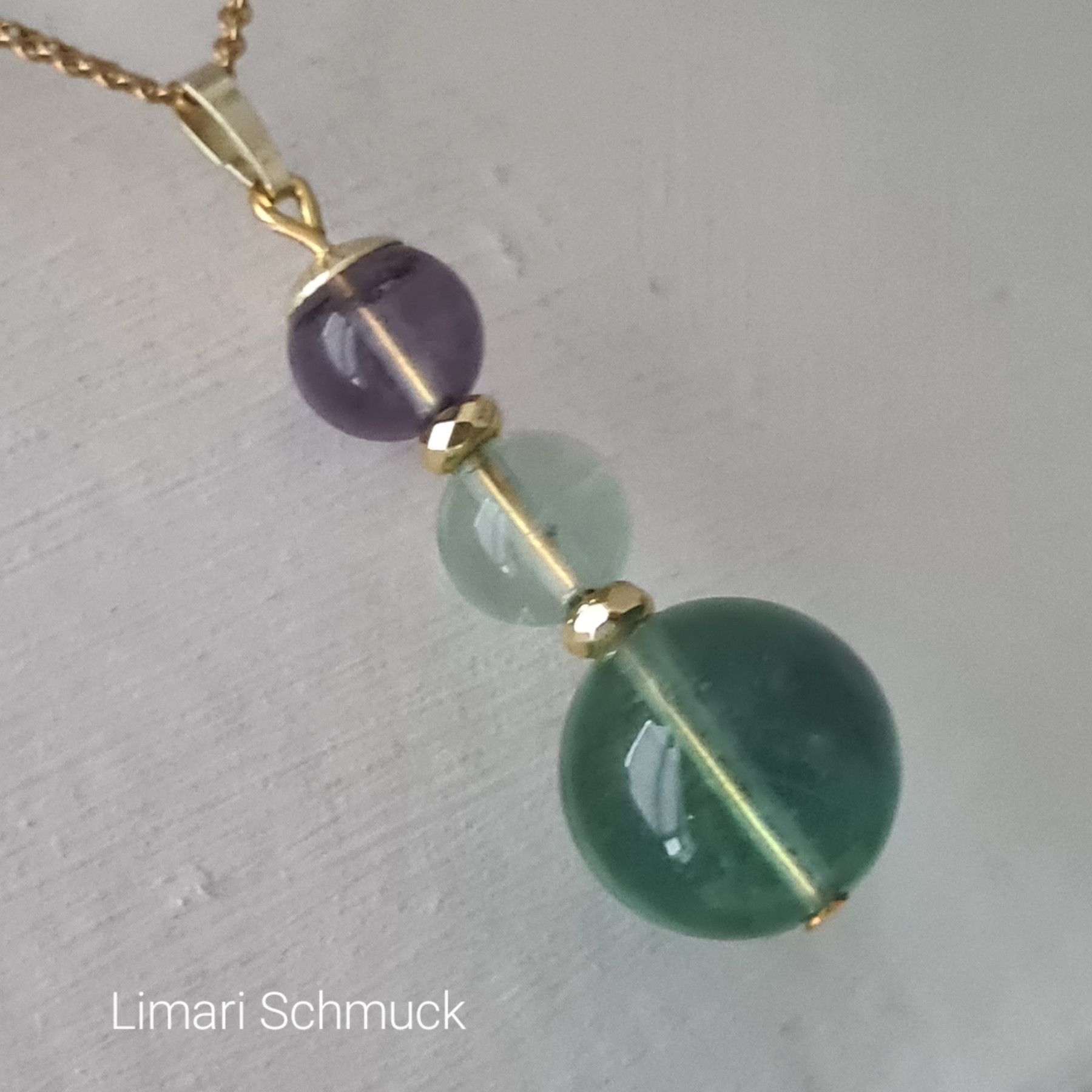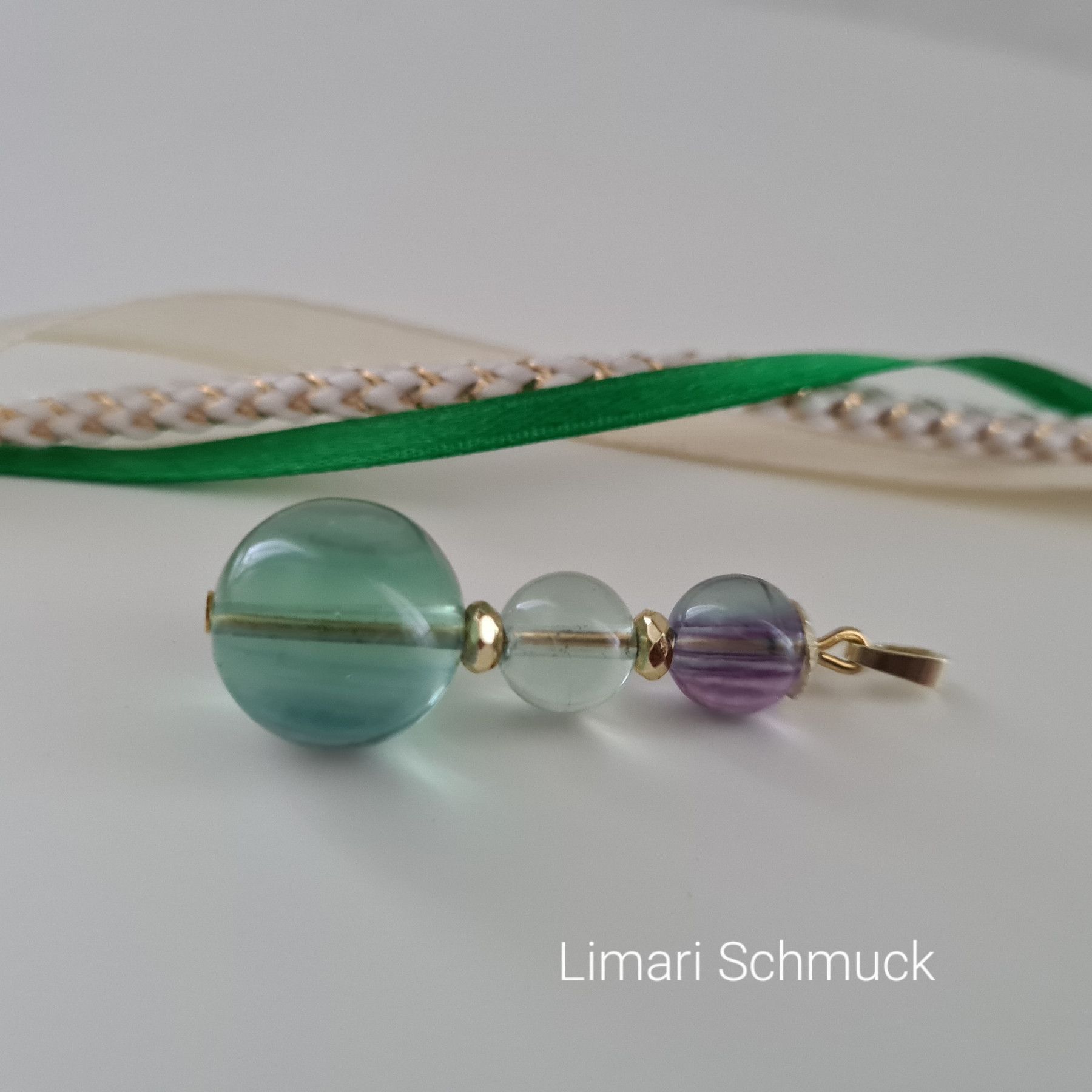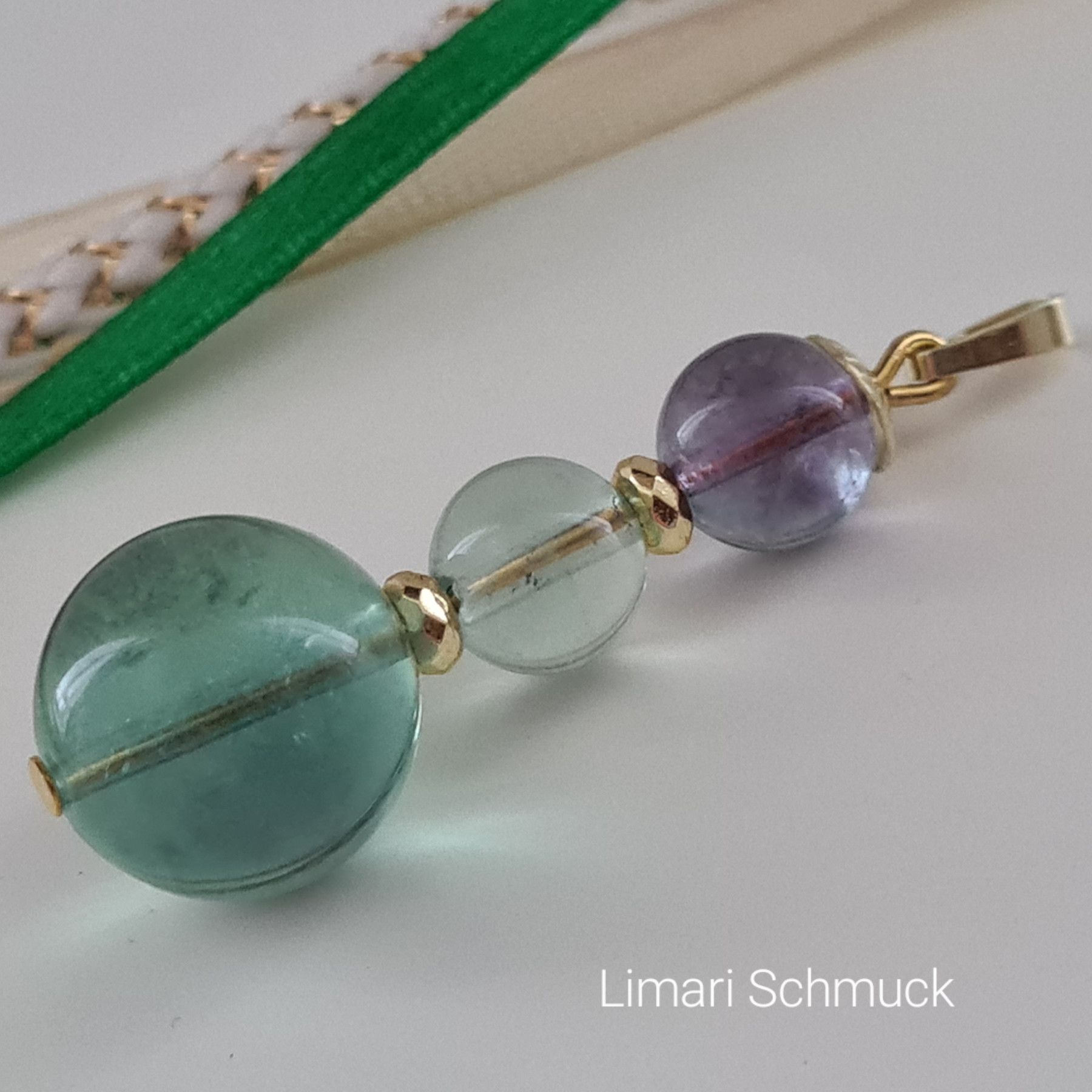 Limari Schmuck Fluorit Anhänger AAAA Gold 585
